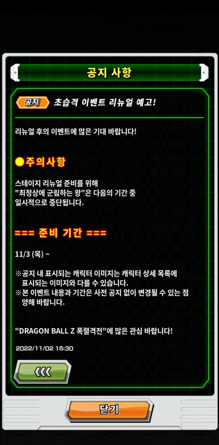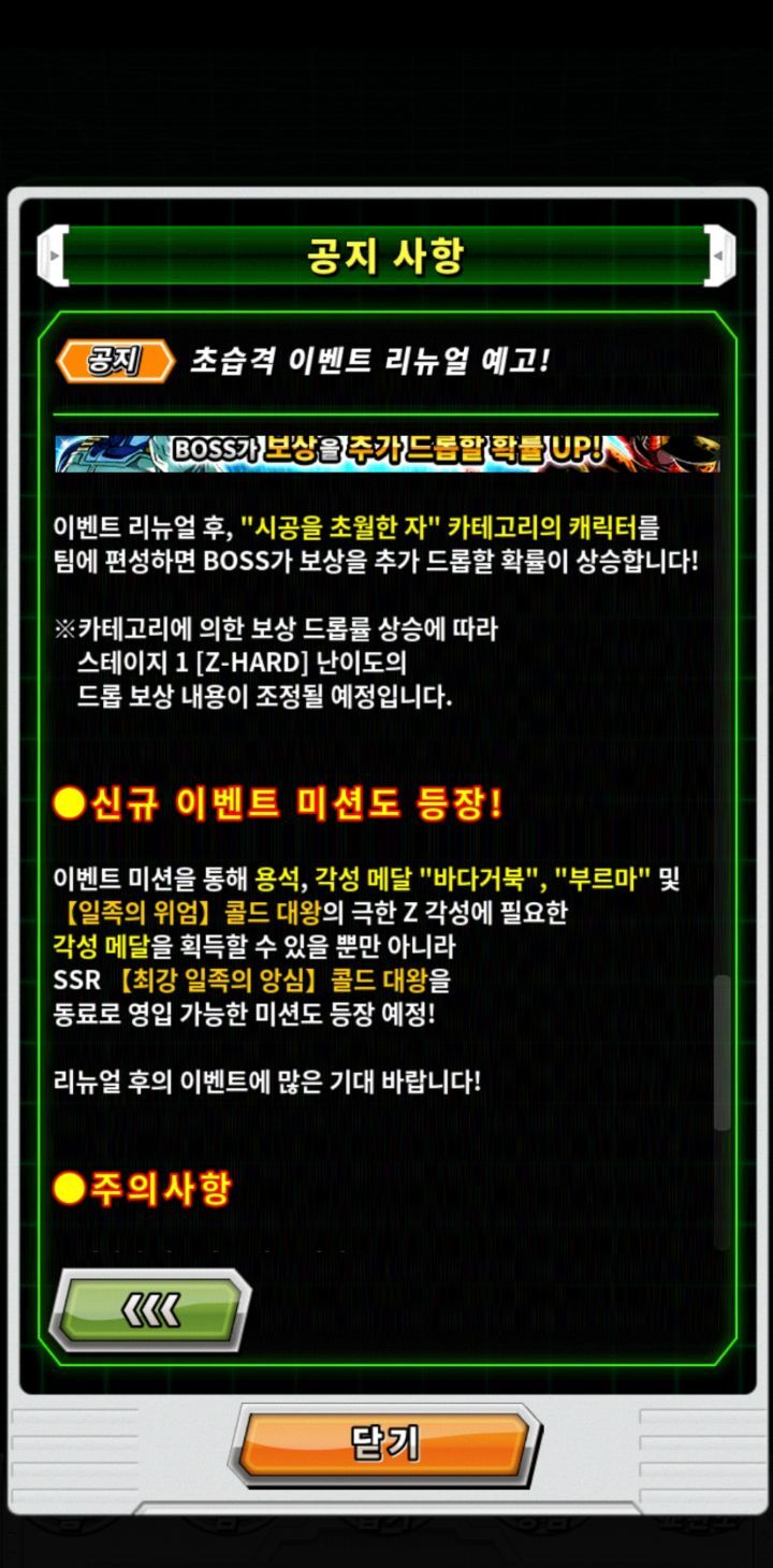 [글로벌]초습격 이벤트 리뉴얼 예고! 작성자유니브로|작성시간22.11.02|조회수133 목록 댓글 1 글자크기 작게가 글자크기 크게가 ※ 글로벌판 인게임 공지 업로드시 제목은 반드시 인게임 공지와 통일시켜 주세요. 부가설명을 적으실 때에는 내용 상단에 적어주시기 바랍니다.-------------------------------------------------------------------------- 다음검색 현재 게시글 추가 기능 열기 북마크 공유하기 신고 센터로 신고 댓글 댓글 1 댓글쓰기 답글쓰기 댓글 리스트 작성자dkgodgod | 작성시간 22.11.02 댓글 전체보기