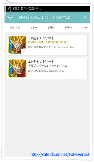 ② 쿠앱 설치 후, 검색을 하면 두가지 버전의 <드래곤볼 Z: 돗칸배틀(폭렬격전)> 을 확인 할 수 있습니다.