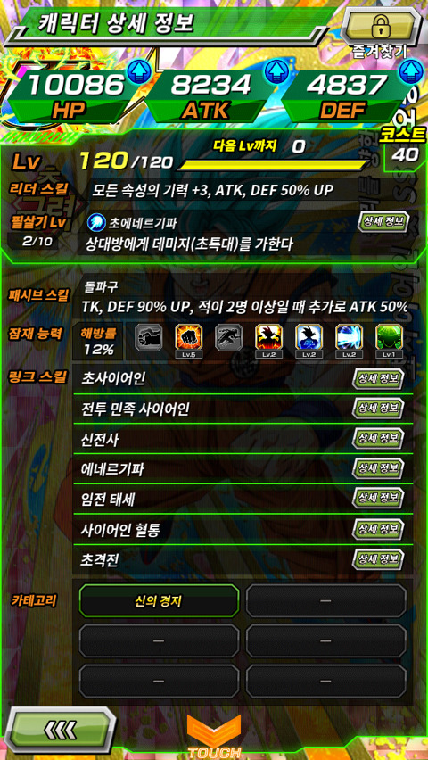 초사이어인-신전사-임전태세라는 링크를 걸어 공업과 기력을 보정해주기에 이렇게 사용하였습니다.