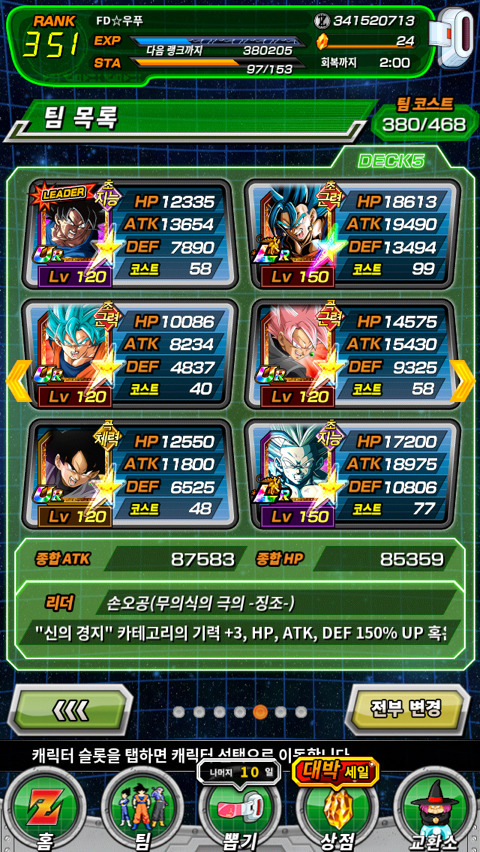 당연히 1군덱이면 상황에 맞춰서 돌릴 수가 있지만 1군덱이 아닐 경우에는 4마리만 맞춰주면 되는 겁니다. 리더 - 파트너, 친구리더 - 파트너, 서브 3마리 이런 식으로말이죠.