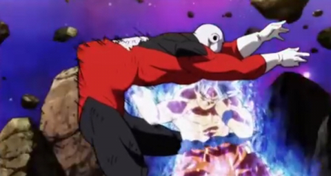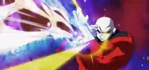 도입부는 작화 감독 타테 나오키가 직접 원화를 담당하였습니다. 타테는 드래곤볼 슈퍼 스케줄링 문제의 말할 것도 없는 최대 피해자입니다. 원화가로서 2화에 참여하고 불과 3주만인, 그 유명한 5화의 작화 감독을 맡아 많은 팬들이 그토록 부르짖는 드래곤볼 Z의 애니메이터였음에도 온갖 오명을 뒤집어쓴 타테는 점점 슈퍼의 제작 스케줄이 개선됨에 따라 같이 자신의 진가를 보여주었고 그것은 이 130화에서도 이어지는데요. 타테 나오키는 그 누구보다도 무의식의 극의와 궁합이 좋은 애니메이터입니다. 타테 특유의 부드러운 액션은 몸이 알아서 움직인다는 컨셉의 무의식의 극의에 딱 맞아 떨어지며 실제로 극의가 처음으로 등장했던 110화 후반부도 거의 타테의 몫이었죠. 이 회차 역시 도입부 전투씬을 보면 오공의 몸이 정말 아무런 무리 없이 지렌의 공격을 다 피해낸다는 느낌을 받을 수 있습니다. 또한 타테의 또다른 강점인 임팩트 프레임과 과장된 표현력이 빛을 보기도 합니다.