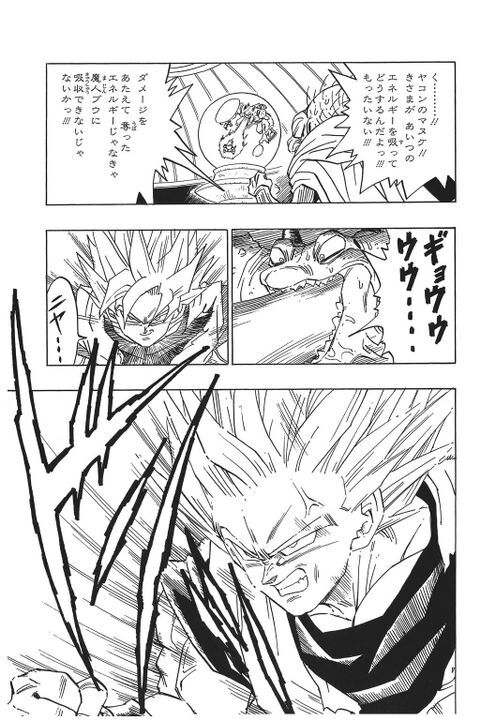 오공은 초사이어인의 빛으로 대처하려하나 야콩은 그 빛마저 흡수해버린다.