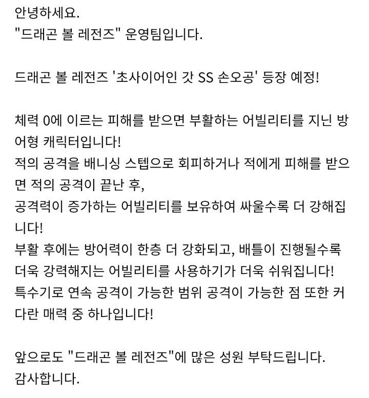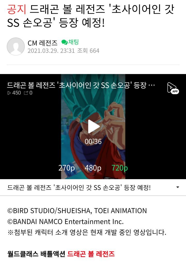 드래곤볼 레전즈 '초사이어인 갓 SS 손오공' 등장 예정 작성자아뇨|작성시간21.03.30|조회수162 목록 댓글 0 글자크기 작게가 글자크기 크게가 https://cafe.naver.com/dragonballlegends/155582드래곤 볼 레전즈 '초사이어인 갓 SS 손오공' 등장 예정!월드클래스 배틀액션 드래곤 볼 레전즈 안녕하세요. "드래곤 볼 레전즈" 운영팀입니다. 드래곤 볼 레전즈 '초사이어인 갓 SS 손오공' 등장 예정! 체력 0에 이르는 피해...cafe.naver.com 다음검색 현재 게시글 추가 기능 열기 북마크 공유하기 신고 센터로 신고 댓글 댓글 0 댓글쓰기 답글쓰기 댓글 리스트