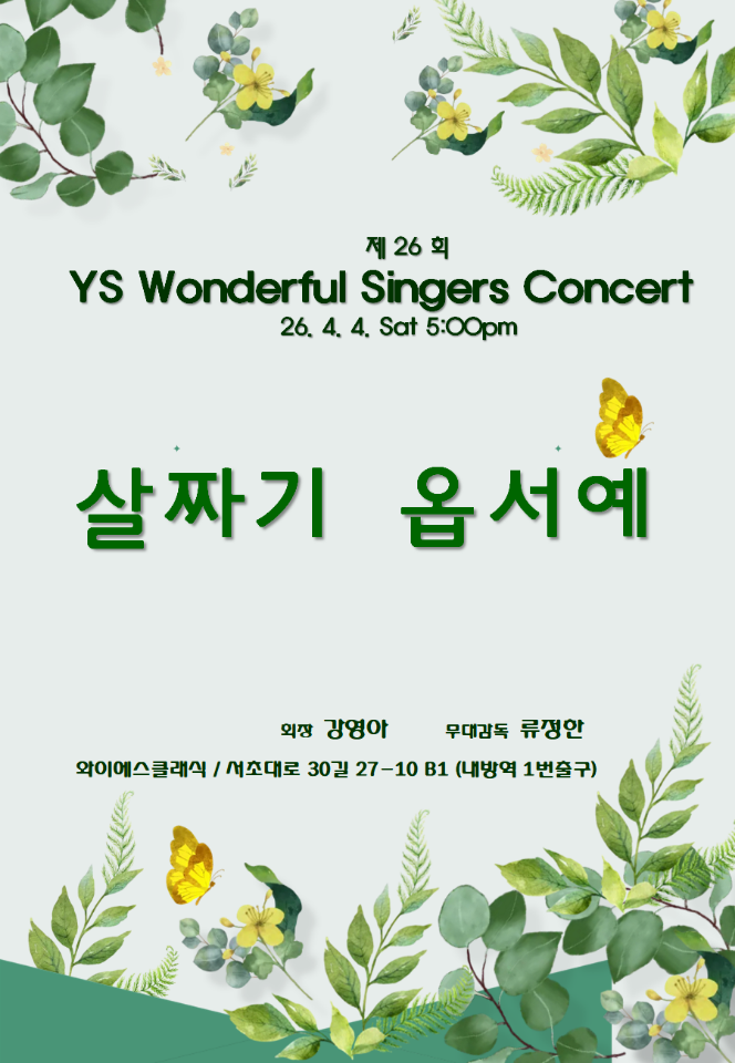공연장:YS클래식홀(서초대로30길27) 아래 약도 참고