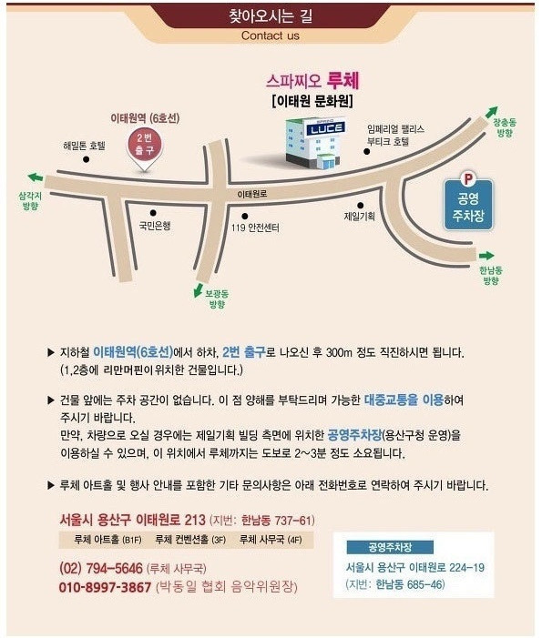 공연장: 이태원문화원 스파찌오루체홀 02-794- 5646
