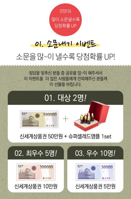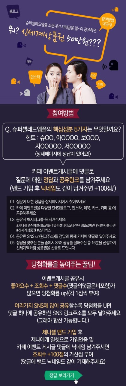 시간을 거스르는 30일간의 기적! 슈퍼셀레드앰플을 소문내고 신세계 상품권 50만원 받아가자!!