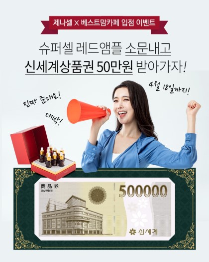 #제나셀 #슈퍼셀레드앰플 #슈퍼셀 #아스타잔틴 #보르피린 #저분자콜라겐 #신세계상품권 #스타벅스 #이벤트