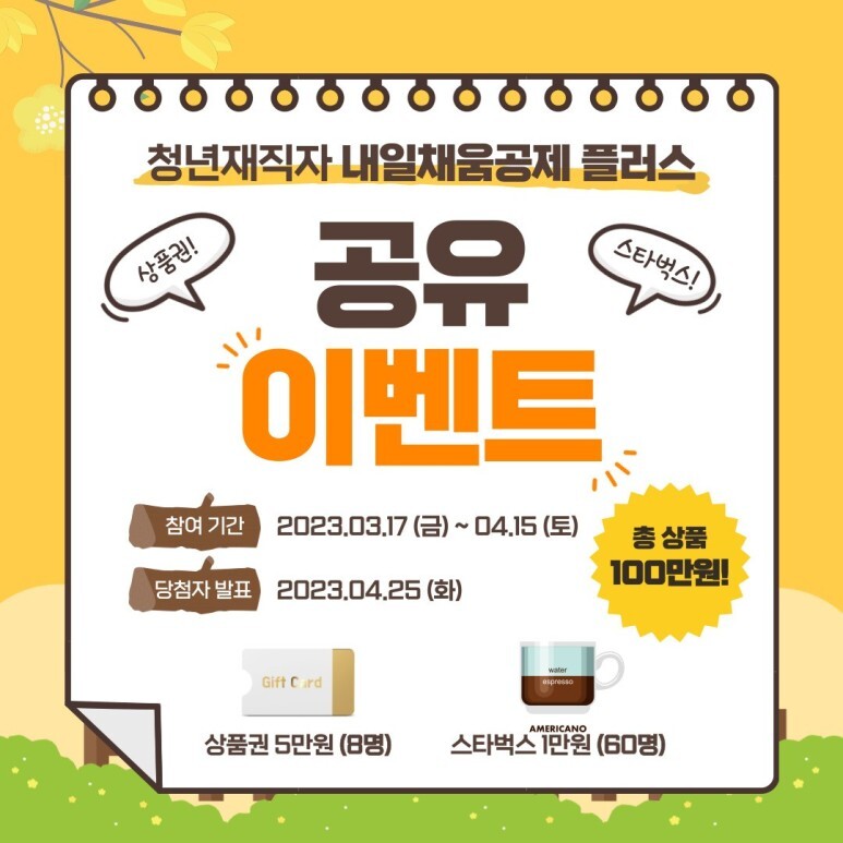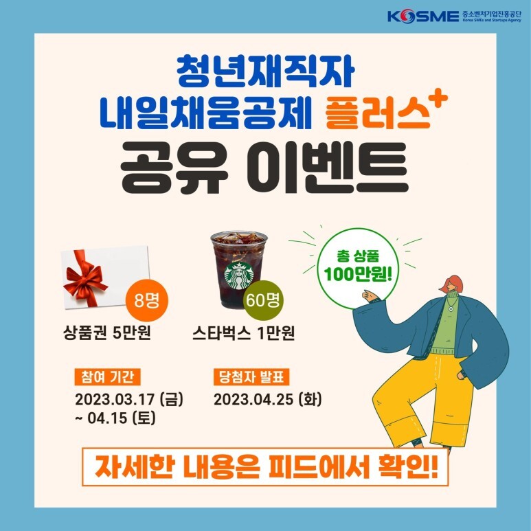 #이벤트 #상품 #커피쿠폰 #스타벅스커피쿠폰 #스타벅스 #상품권 #백화점상품권 #청년 #청년정책 #취업 #목돈 #취업지원 #청년재직자내일채움공제플러스 #내일채움공제 #내일채움공제플러스 #직장 #월급 #직장일상 #직장꿀팁 #산업 #건설 #제조 #중소기업 #자산 #일자리