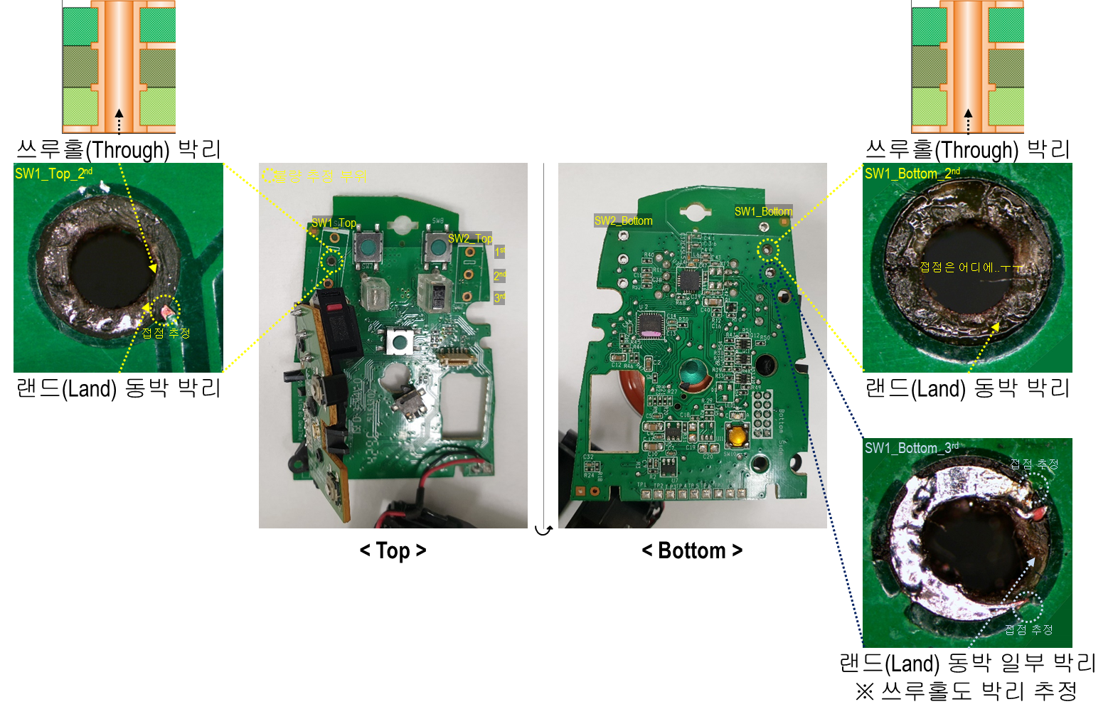 | 증상/기타 문의 | - 수리 요청 사항 1) 마우스 좌/우 버튼 교체 2) 마우스 가운데 휠 좌/우 버튼 점검 - 마우스 좌/우 버튼 모두 클릭 오류 발생하여 자가수리를 위한 분해 중 PCB 랜드 및 쓰루홀 동박 박리하여 작동불가 - 자가수리 시 사용했던 옴재 한쌍 동봉 - 분해하여 전달드리오니 재조립 어렵거나 난해할 시 작동 확인만 하시고 보내주시면 제가 조립하겠습니다 - 수리 전 연락 한번만 부탁드립니다! - 타사 내용이긴 하지만 동일 모델 분해한 사진이 있어 참고하시라고 링크 공유드립니다 (https://blog.naver.com/ssun101010/221425441097) |