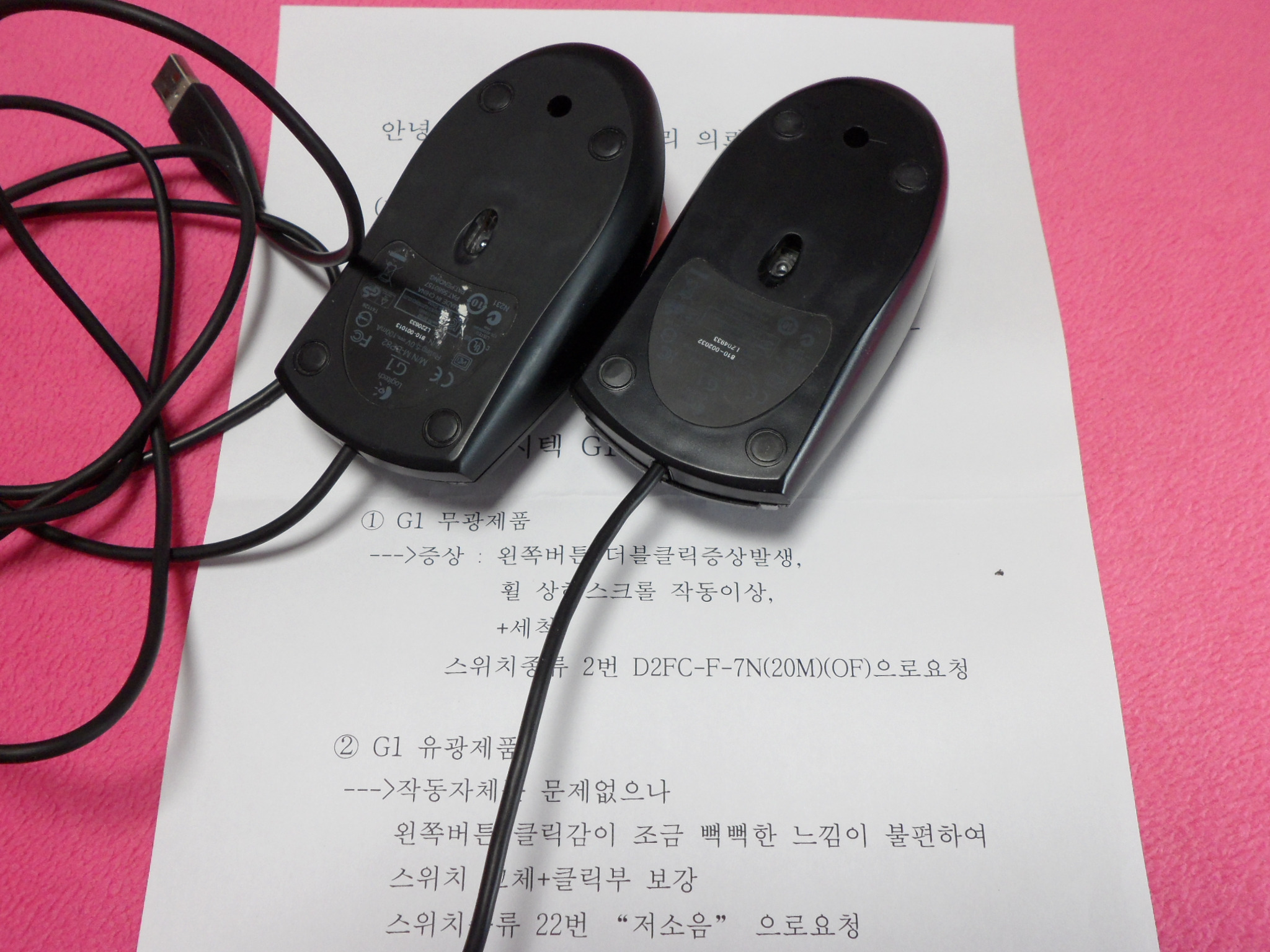 Logitech™ G1 Optical Mouse 2개(모조품 1개) 수리 의뢰해 주셨습니다.