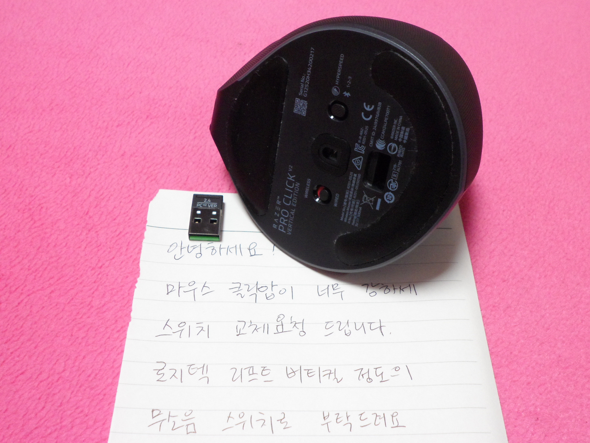 Razer Pro Click V2 Vertical Edition Productivity Mouse 수리 의뢰해 주셨습니다.