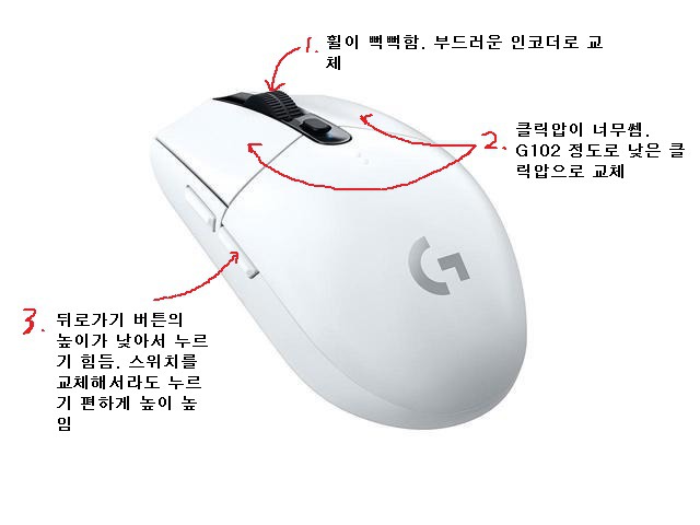 3. 뒤로가기 버튼도 g102보다 낮게 들어가 있어 누르기 힘든데 스위치를 교체해서 약간 높게 (누를때 부드러운 클릭압)
