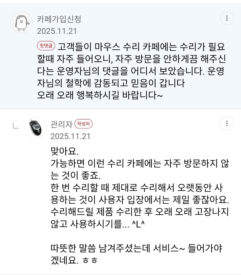 어디까지가 수리이고 어디부터가 서비스인지 구분이 안될 정도로 만족스럽습니다.
