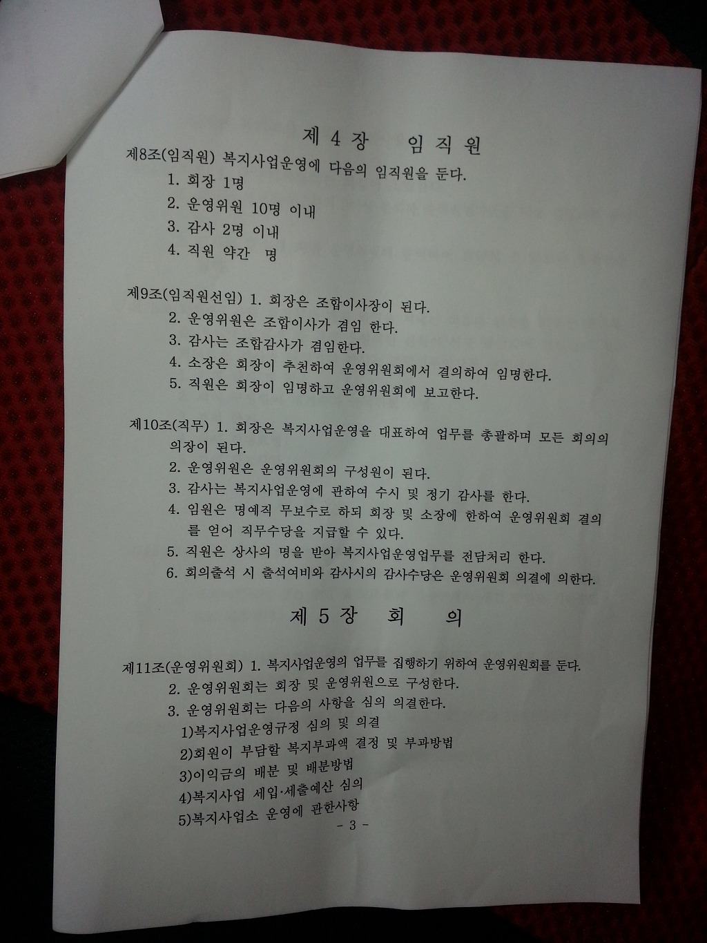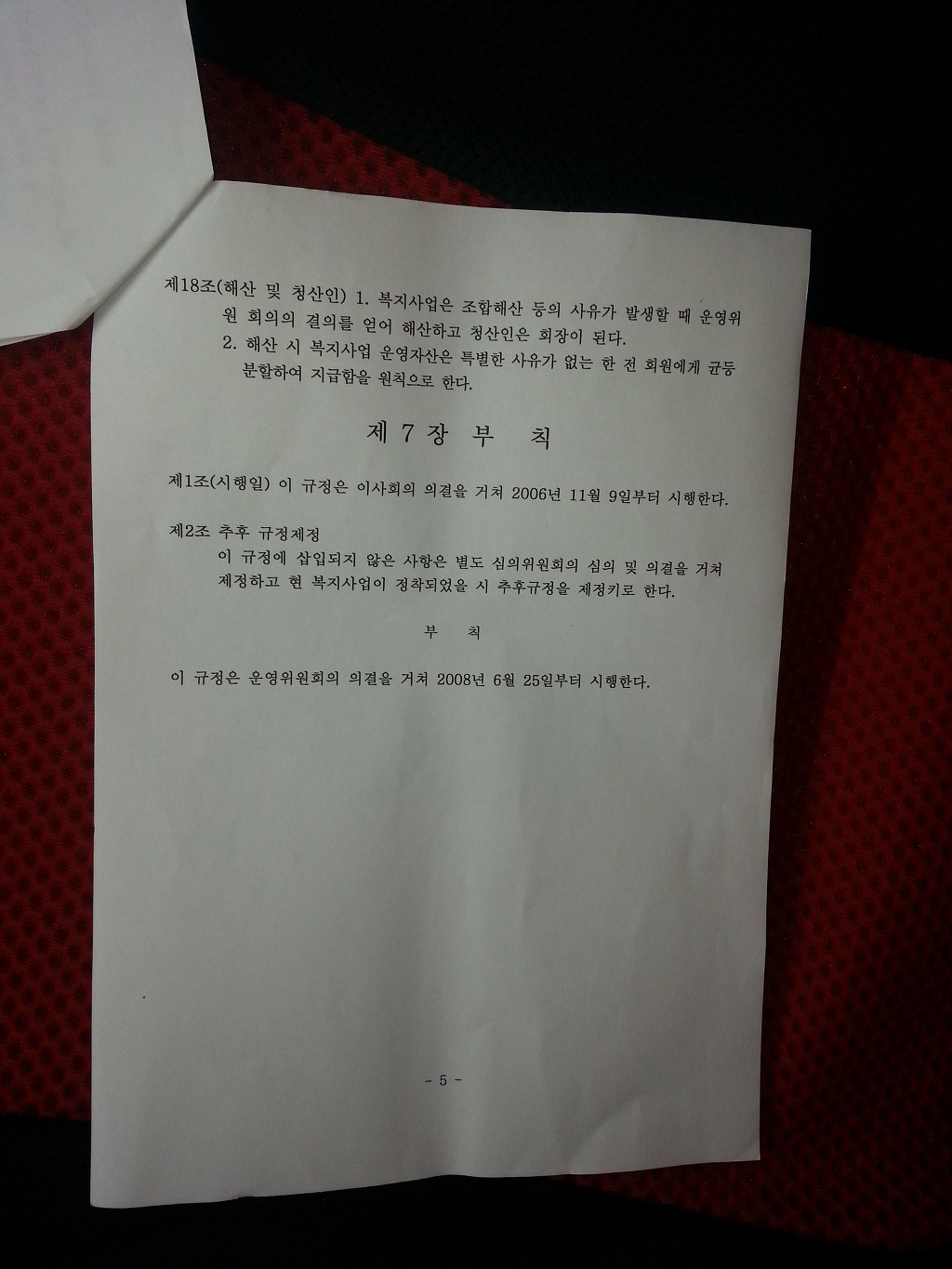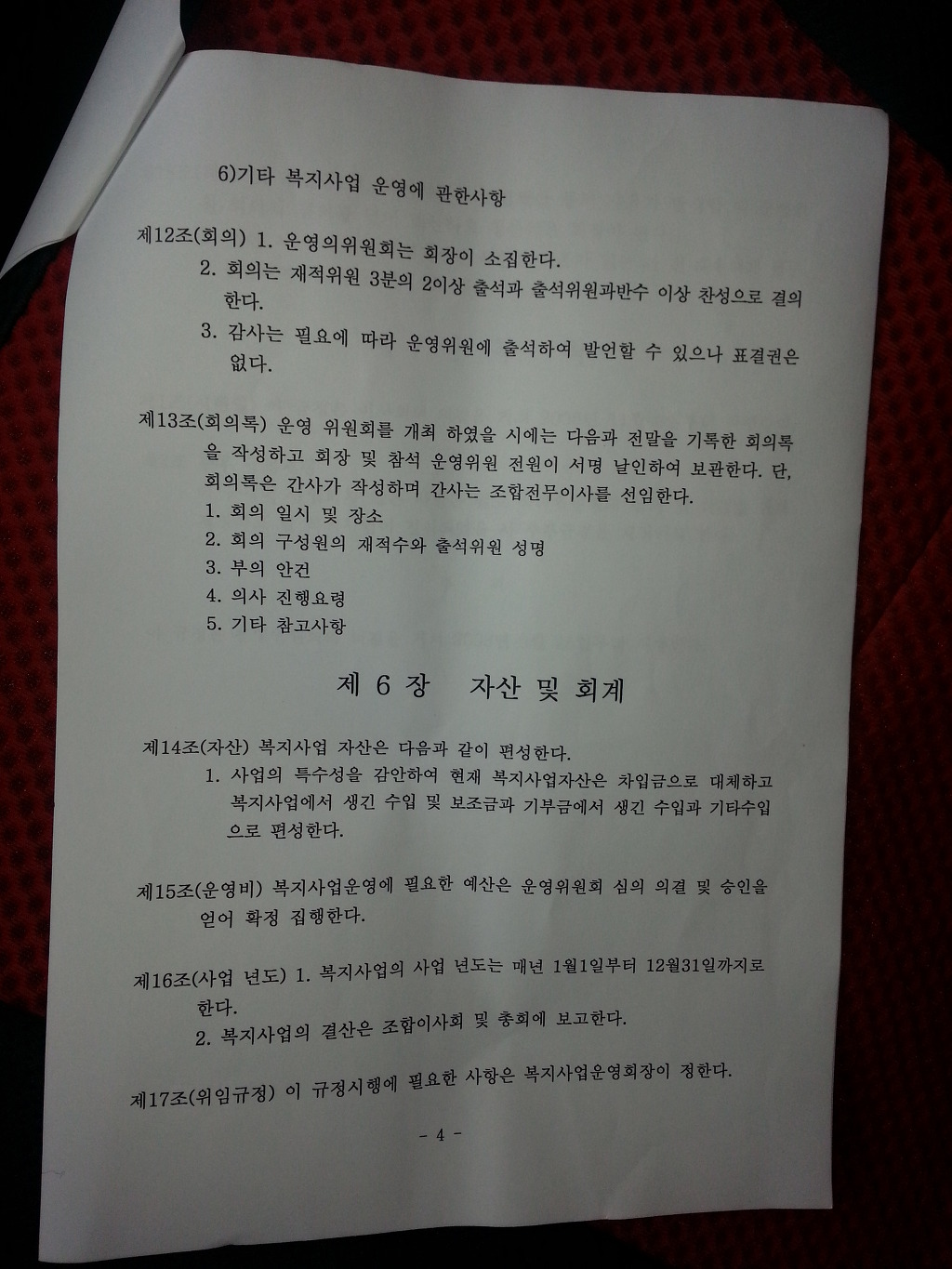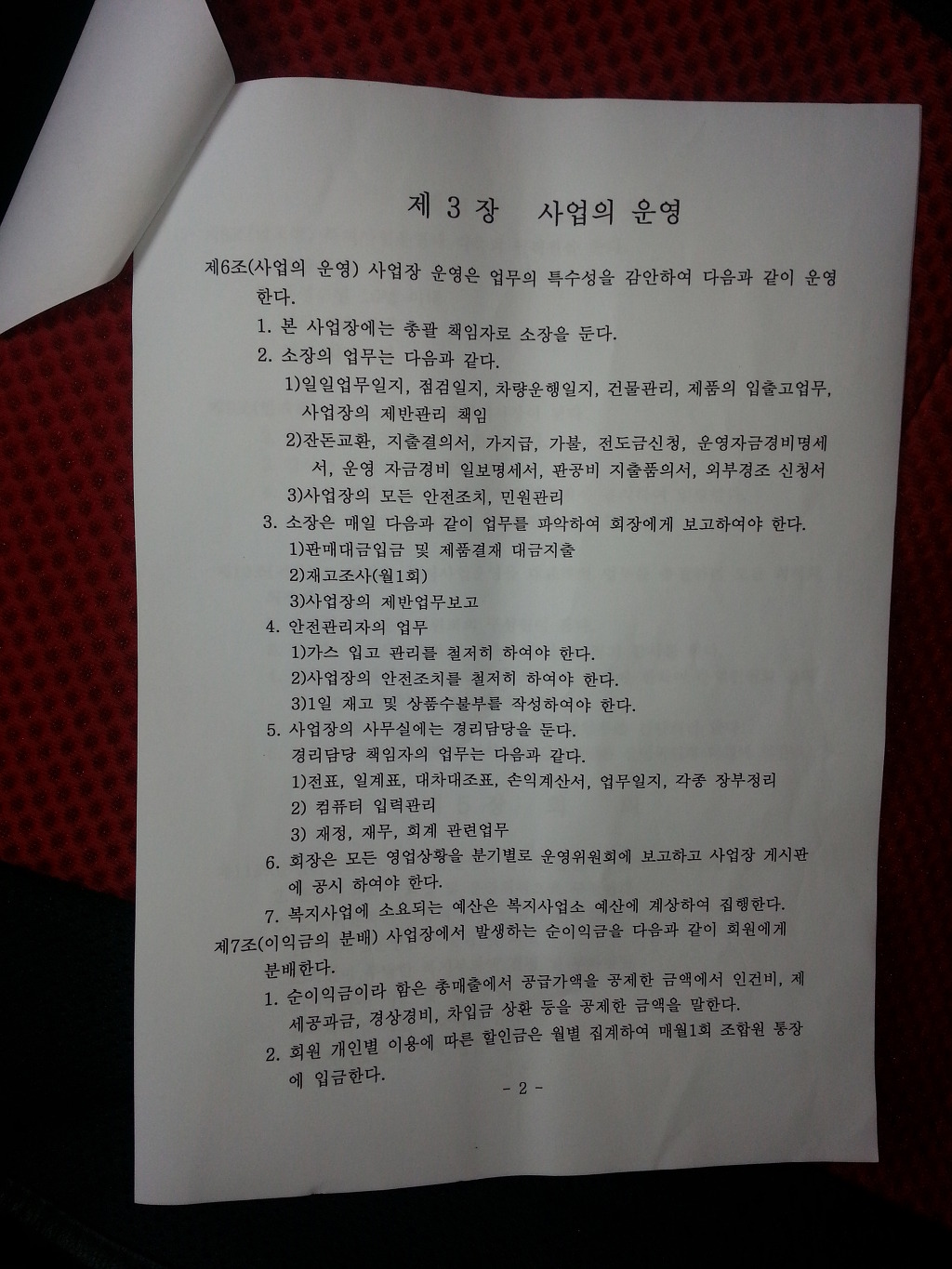 아래의 사진은 파렴치한 운영규정과 분배규정입니다