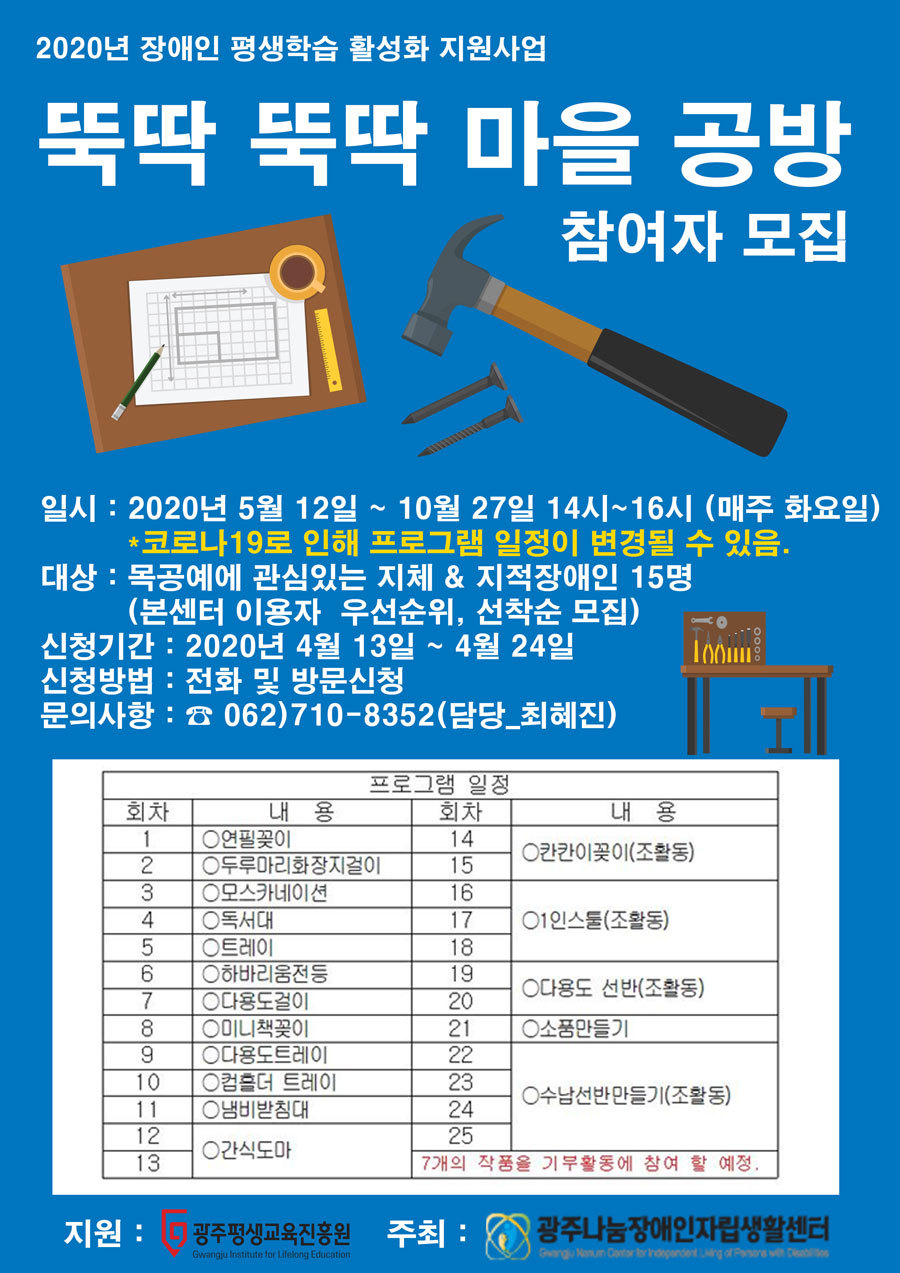 2020년 뚝딱 뚝딱 마을공방 참여자 모집안내
