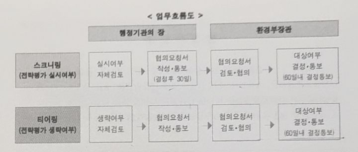 추가해 전략환경영향평가 스크리닝과 티어링은 제도가 시행된 2016년 이후로 외부에 알려진 공식적인 절차 이행 사례가 없어 명확치는 않으나 법 및 시행령 내용으로만 유추해보면