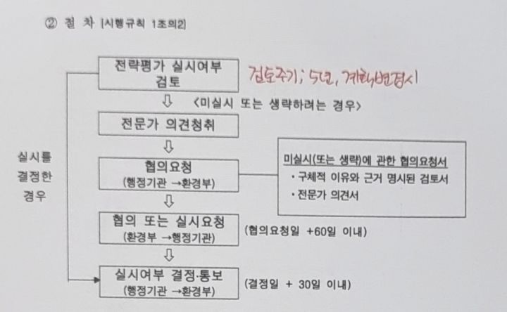 2. 환경부장관은 검토하여 전략평가가 필요하다고 판단되면 실시를 요청할 수 있다. 고 하였으니 실시여부의 최종결정은 소관 행정기관이 아닌가하여,