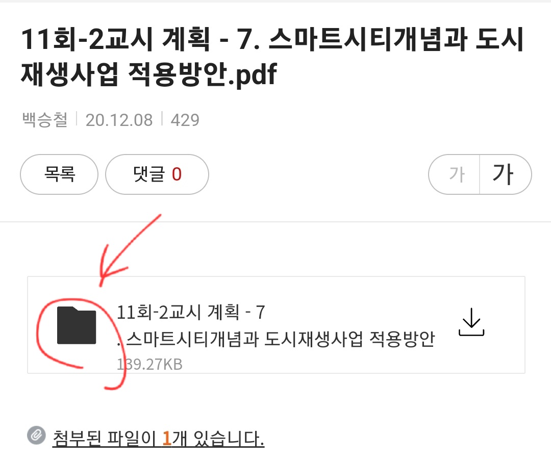 첨부파일을 다운로드 받으려고 하면