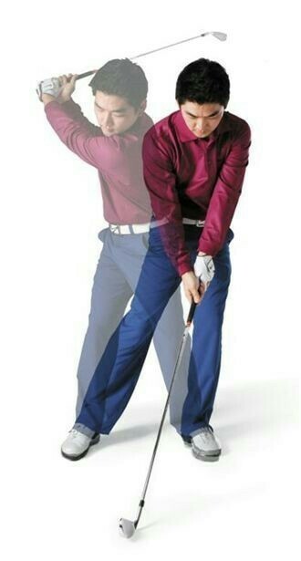 <사진2> 셋업에서 임팩트로 가는 과정에서 몸이 목표방향으로 따라 움직이면 클럽 페이스가 직각이 되기 전에 볼을 때려 슬라이스가 나게 된다.
