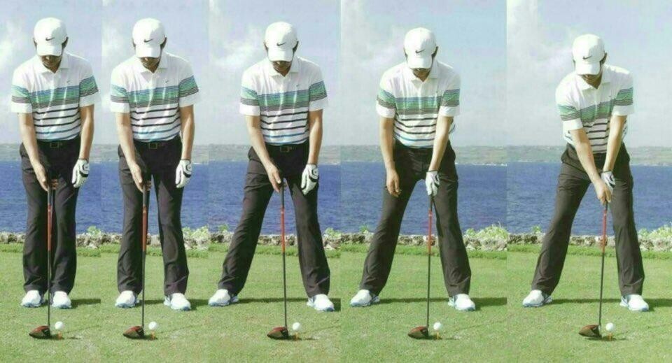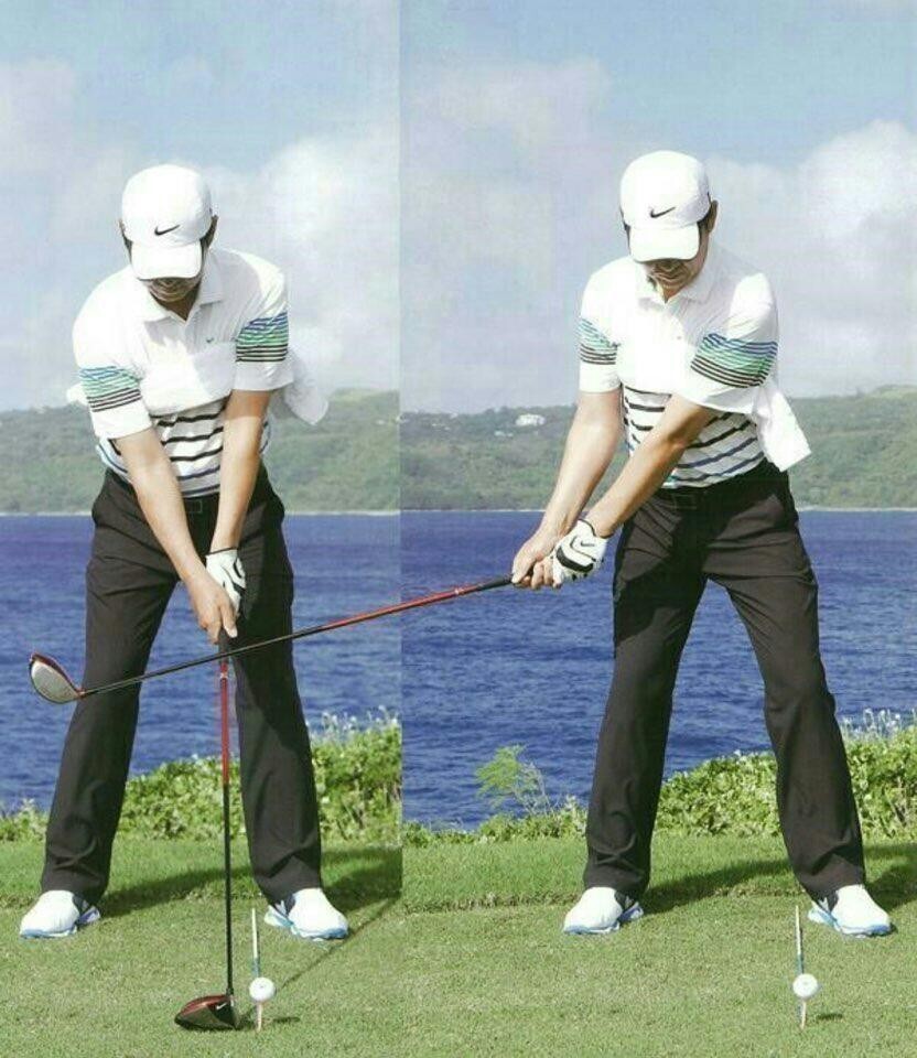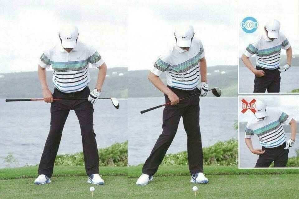✔먼저 어드레스를 한 상태에서 드라이버를 왼쪽과 오른쪽 골반 끝에 닿도록 섭니다.
