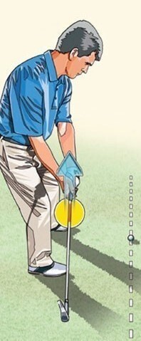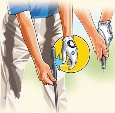 이를 고치기 위해 샤프트의 앞쪽, 그립의 바로 아래쪽으로 얇은 테이프를 한줄 붙인다. 그리고 샤프트가 지면과 평행을 이룰 때까지 엉덩이 높이로 백스윙을 한다.