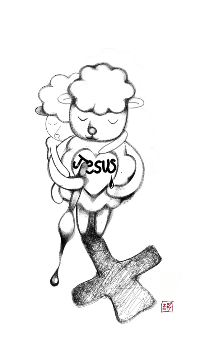 세상 죄를 지고가는 하나님의 어린 양의 이미지는 죄인인 나를 업고 가시는 예수님입니다.