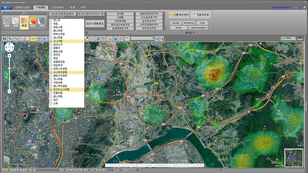 * [Biz-Map/Pro]임상도 수종별 분포 밀도분석. ver. 2012.6.6.0 (2012/06/25)이상의 버젼