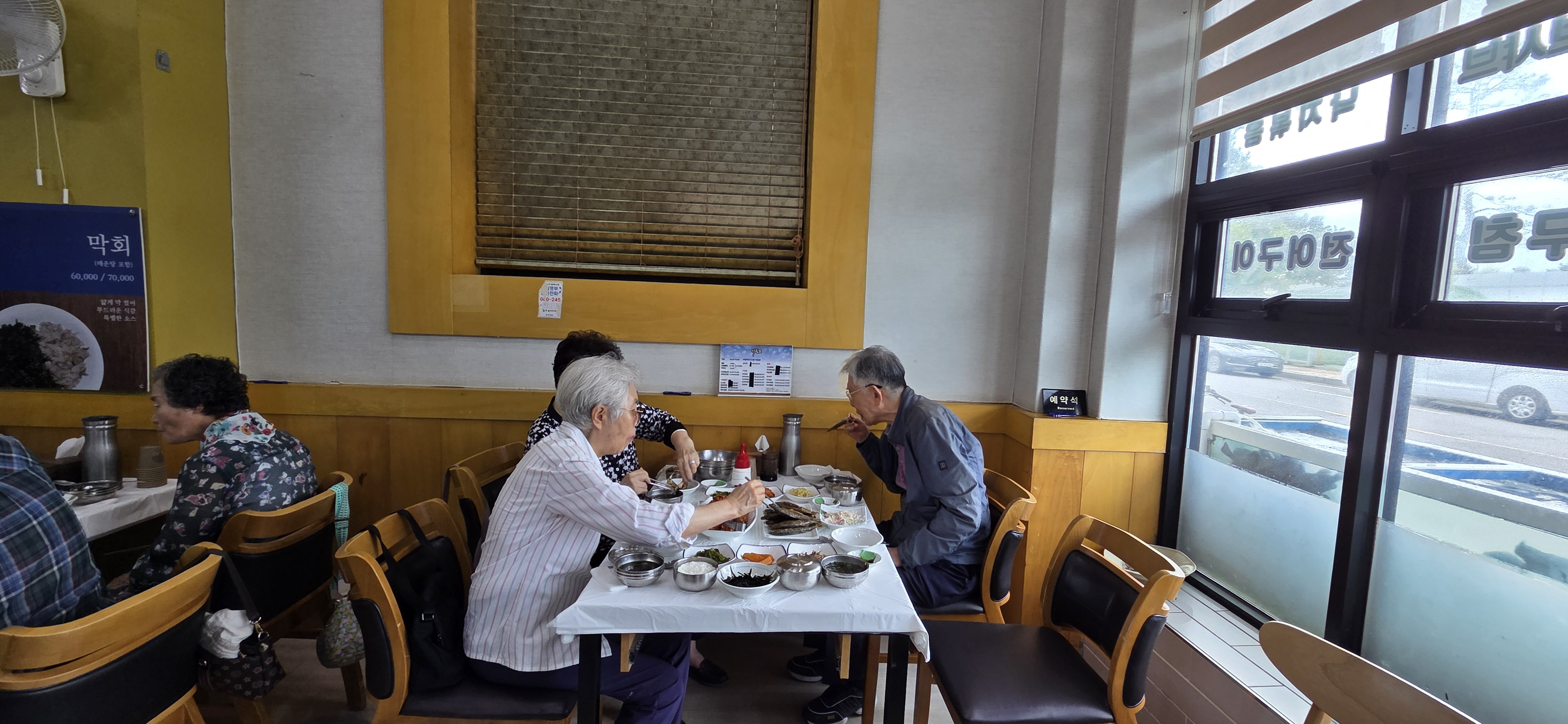"갯마을 횟집" 에서 맛있는 제철 전어구이랑 전어회무침을 맛있게 드시고, 바닷가로 산책을 나가셨습니다.