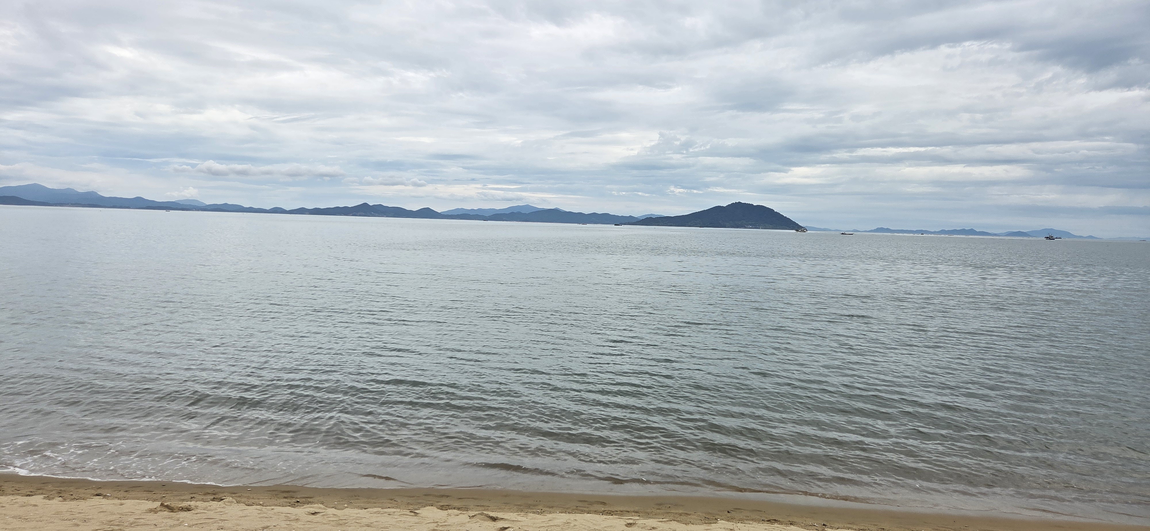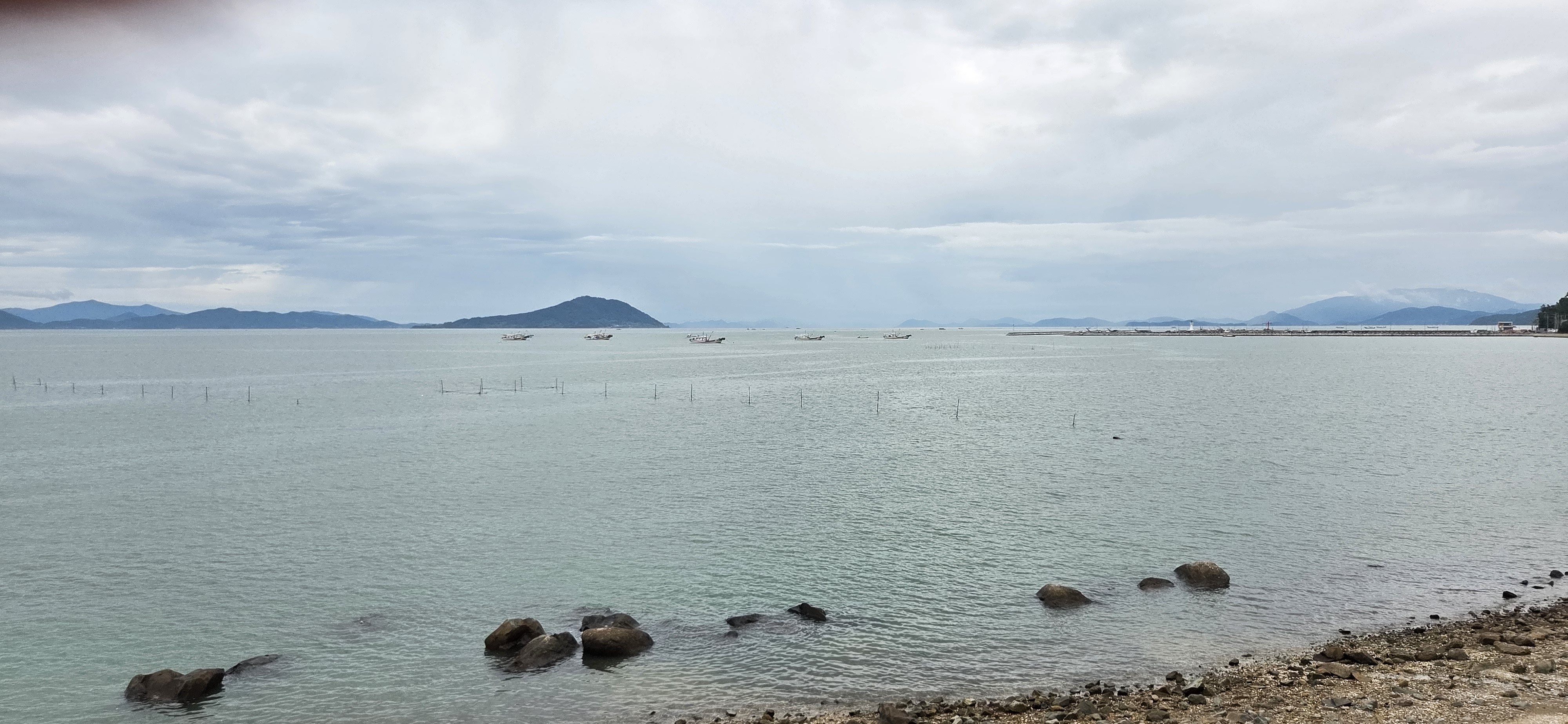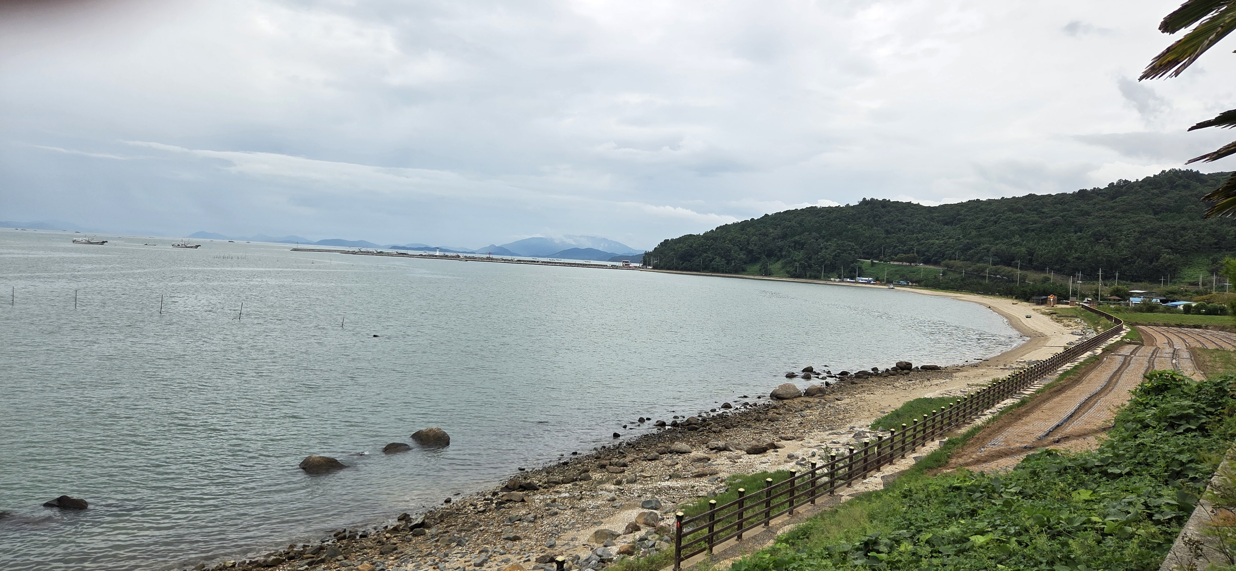 카페 밖에서 찍은 회천 바닷가 풍경입니다