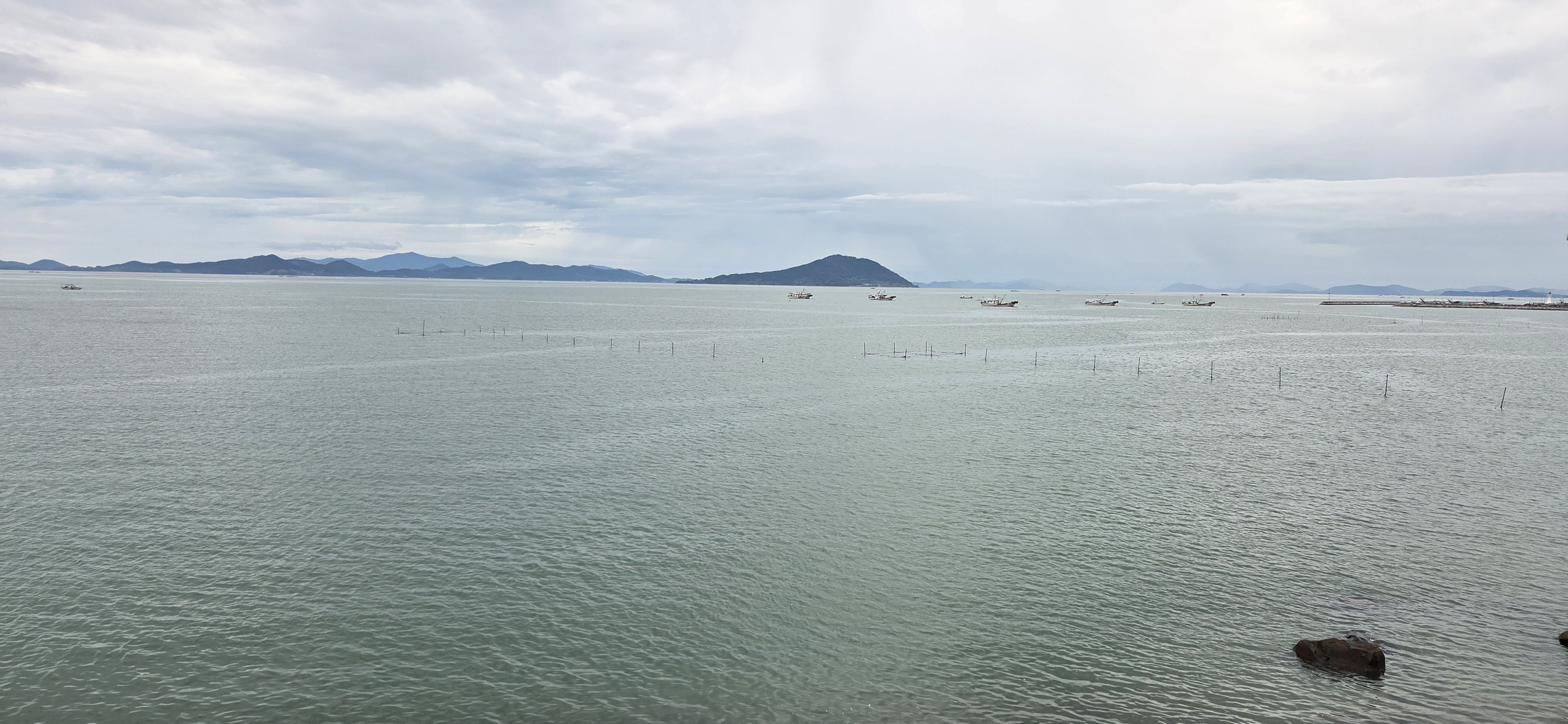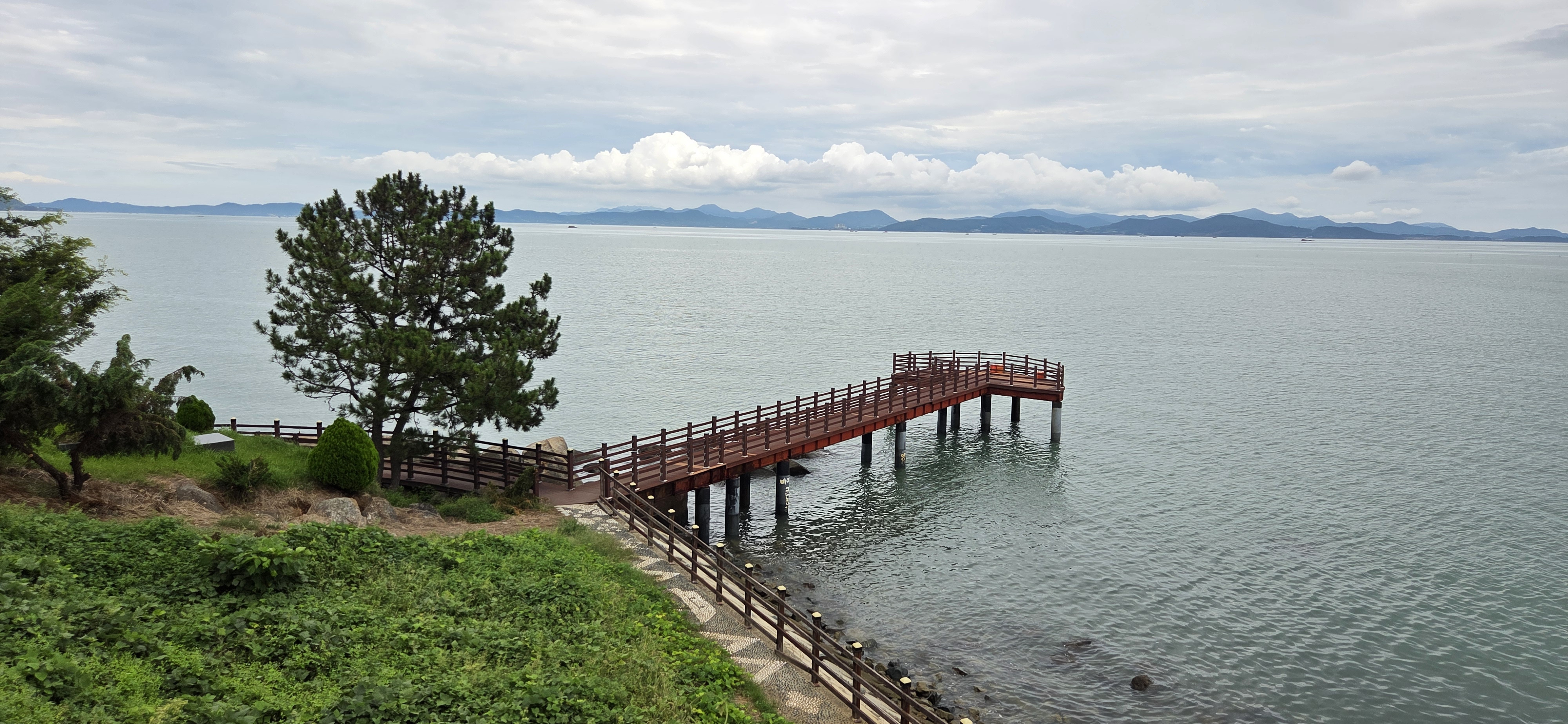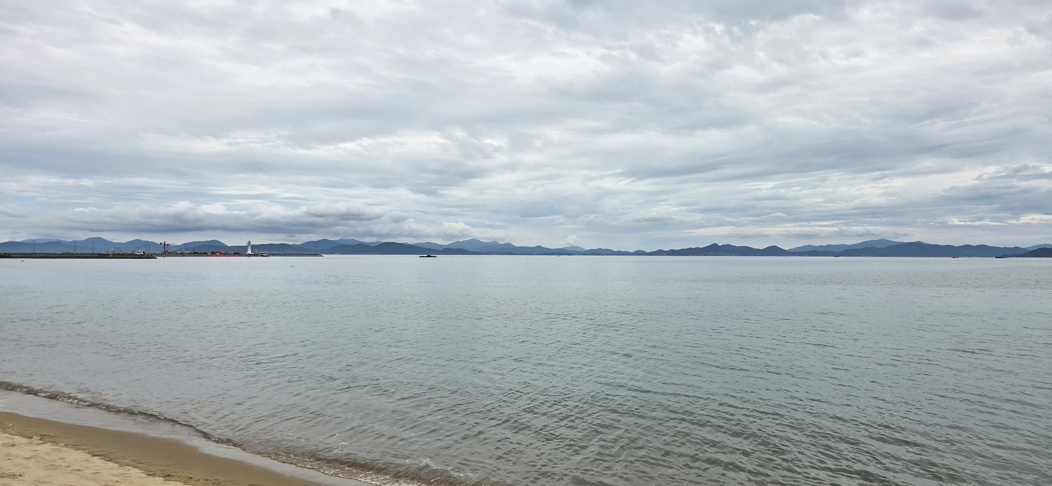 카페 밖에서 찍은 회천 바닷가 풍경입니다