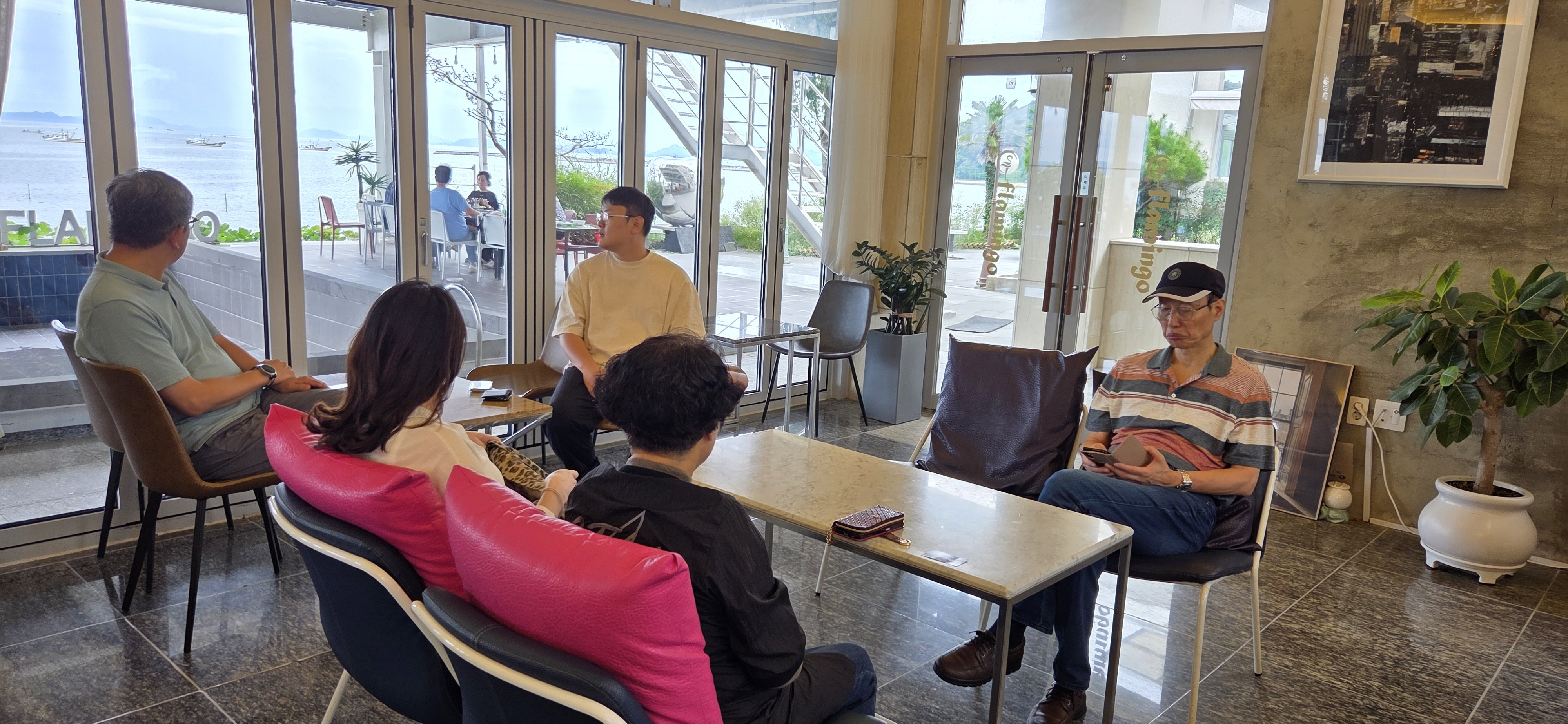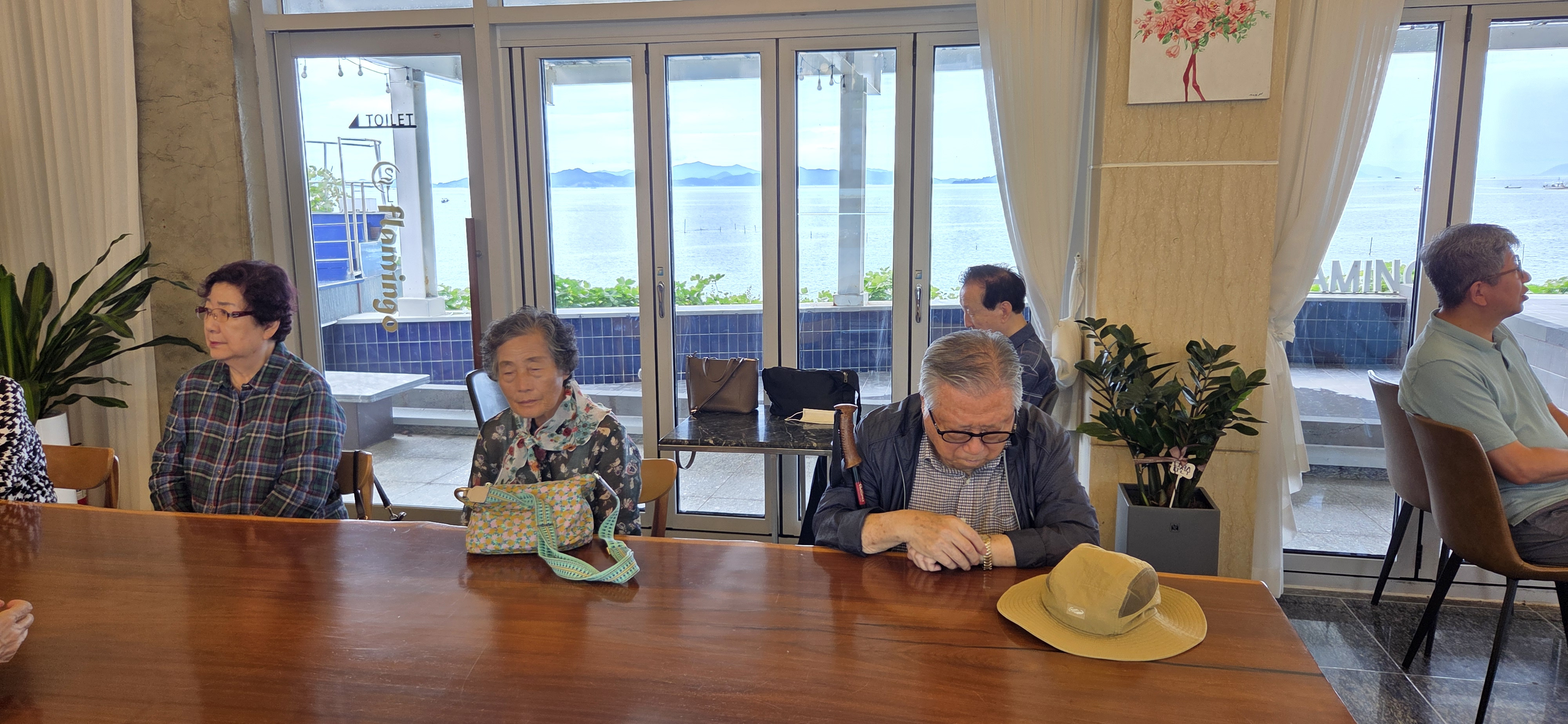 그리고 회천바닷가가 보이는 "플라밍고 카페"로 향해서 커피타임을 가졌습니다.차를 드시고,출발할때 살짝 소나기가
