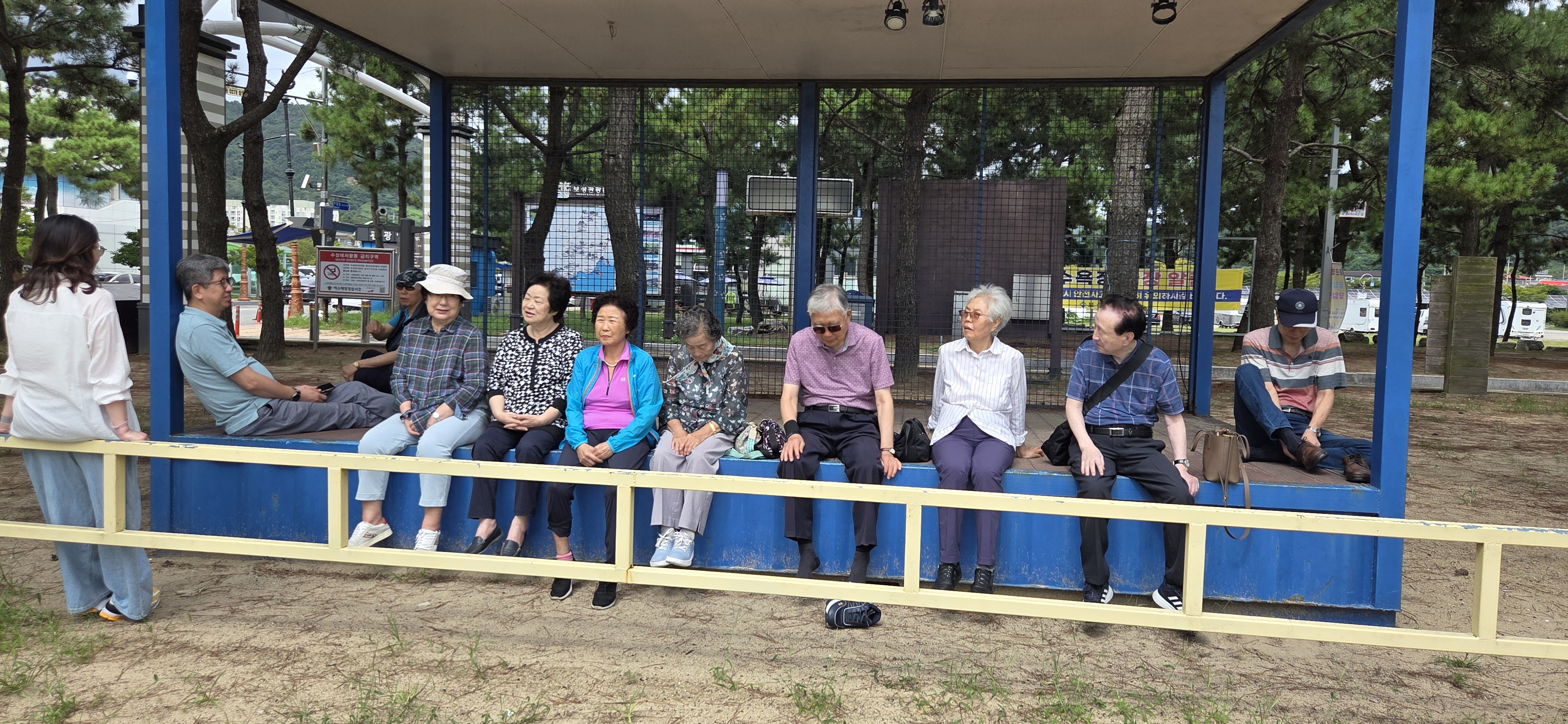 보성 율포해수욕장 바닷가를 거닐고 나서 잠시 휴식중이신 어르신들의 모습입니다.