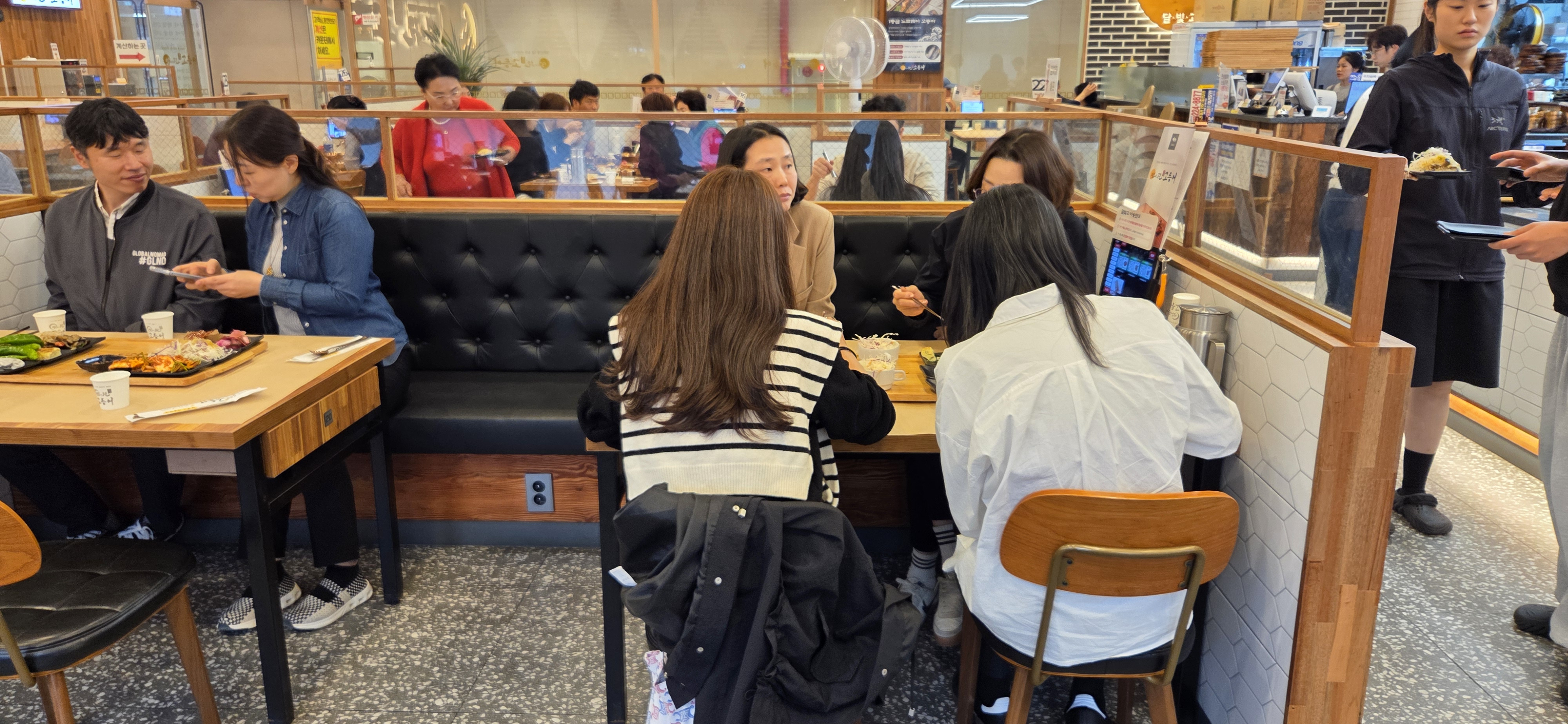 테이블별로 앉아서 셀프바에서 반찬을 가져와야 되는 것이 인상적..