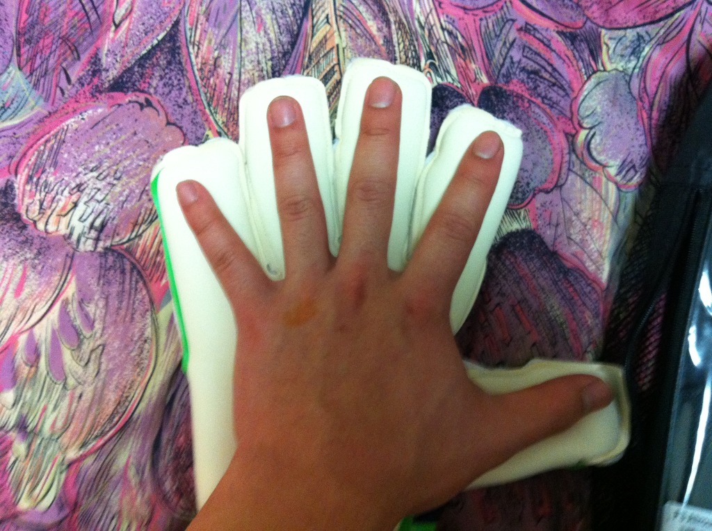 손바닥의 라텍스또한 충격에 쉽게 손상되는 편이며 나이키 제품과 비교햇을때 특히 손등부분이 약하게느껴집니다.