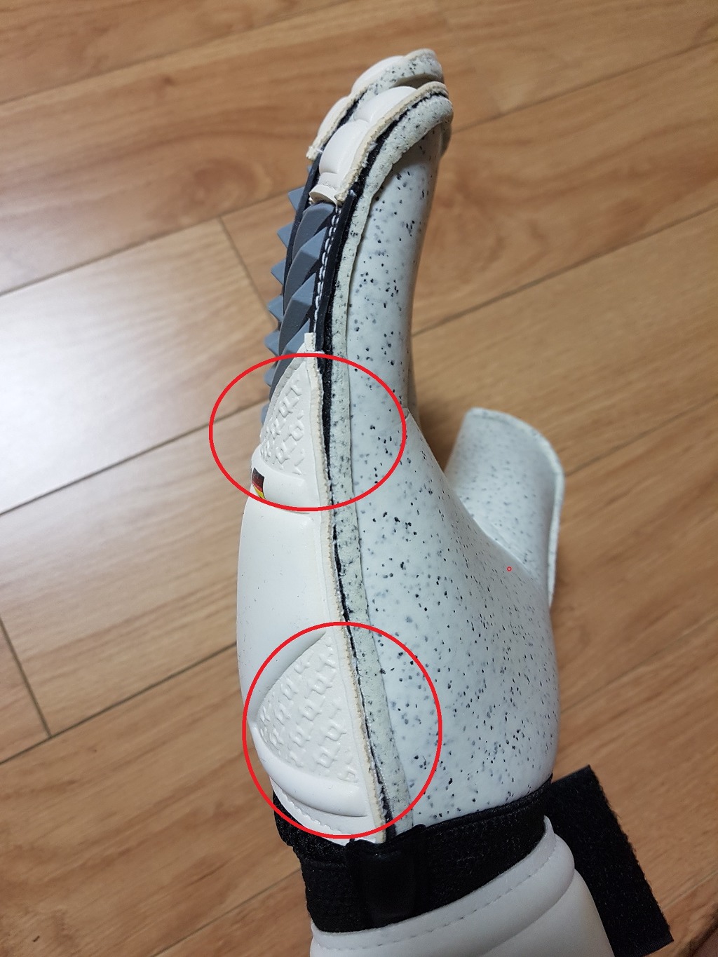 ▲엄지 부분을 보면, 엄지몸통이 라텍스로 되어있지 않고