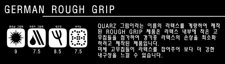 카이로스는 쿼츠 라텍스를 계량하여 만든 러프그립 라텍스로 되어있습니다.