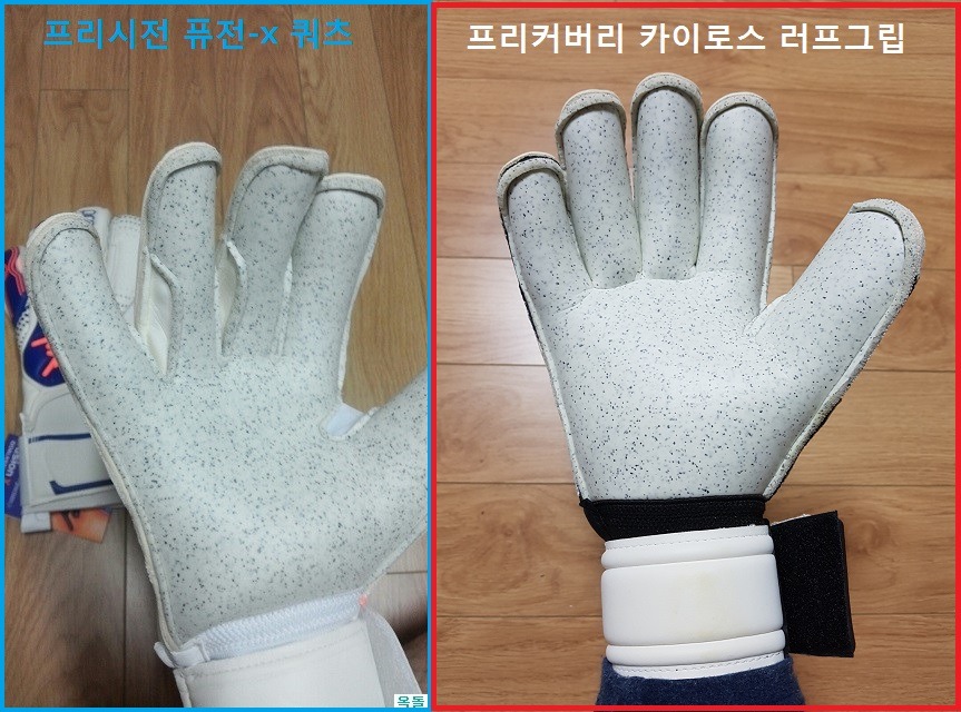 ▲프리시전 퓨전x 쿼츠 장갑과 손바닥 라텍스가 유사합니다.