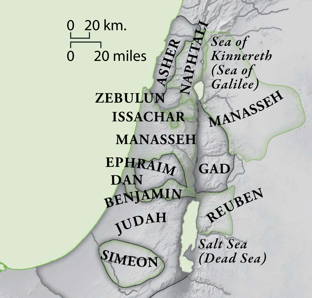 요단 동편은 모세를 통해 르우벤, 갓, 므낫세 반 지파에게 기업으로 분배되었다.