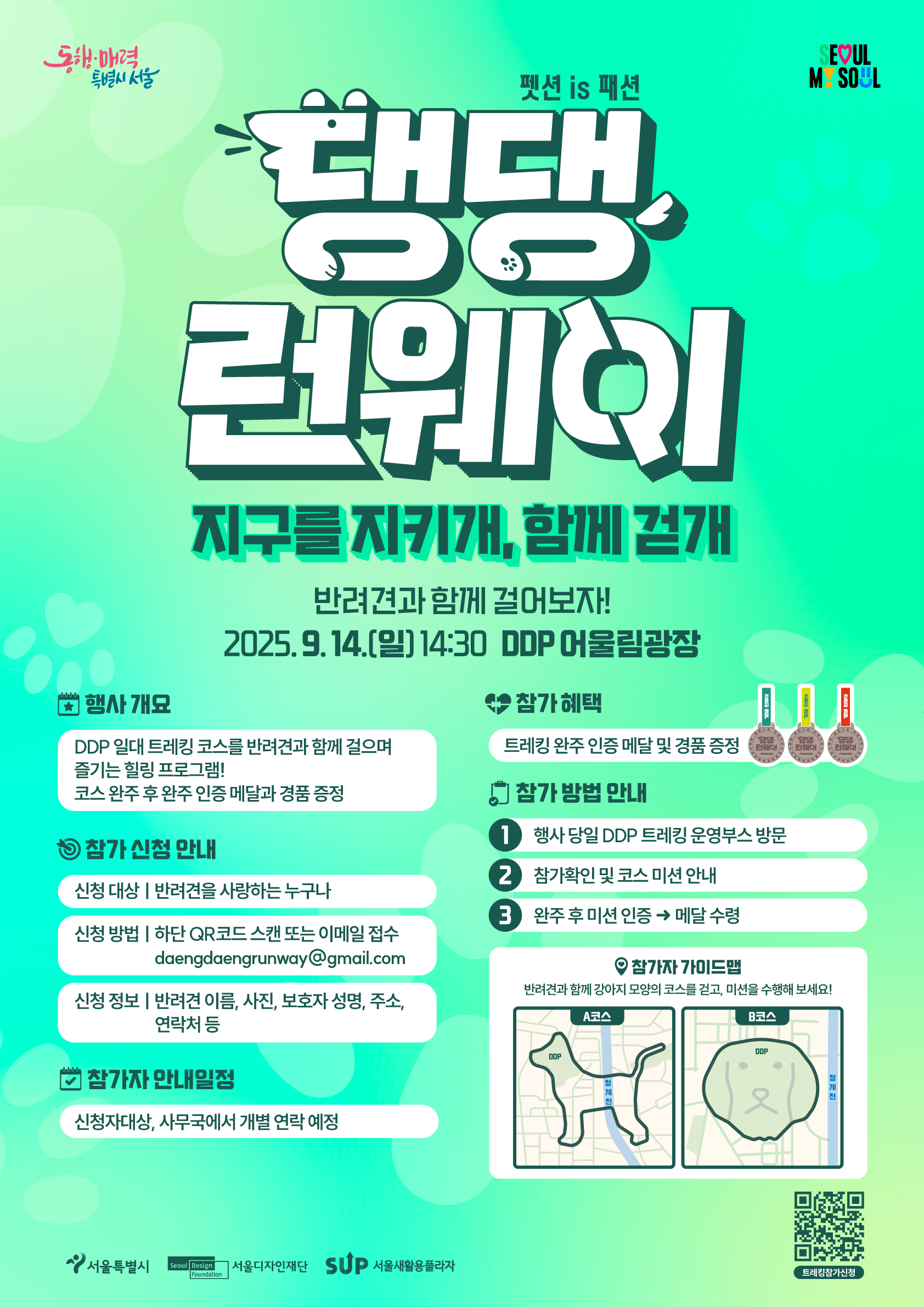 ๋๋ํธ๋ ํน (14:30) : ๋ฐ๋ ค๊ฒฌ๊ณผ ํจ๊ป DDP ์ฃผ๋ณ ๊ฑท๊ธฐ, ๊ธฐ๋ ๋ฉ๋ฌ ๋ฐ ๊ฒฝํ ์ฆ์