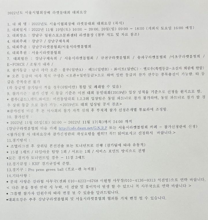 2022 서울시협회장배 라켓볼대회 작성자땅콩|작성시간22.11.09|조회수57 목록 댓글 0 글자크기 작게가 글자크기 크게가 다음검색 현재 게시글 추가 기능 열기 북마크 공유하기 신고 센터로 신고 댓글 댓글 0 댓글쓰기 답글쓰기 댓글 리스트