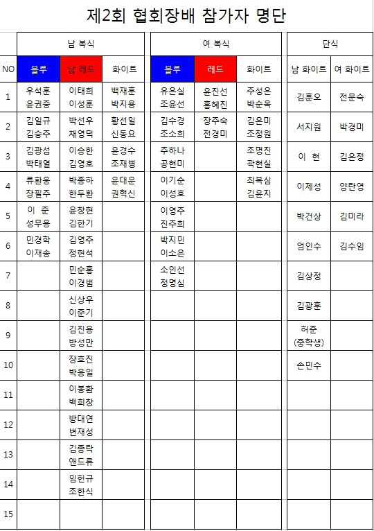 제2회 고양시협회장배 라켓볼대회 최종 참가자 명단입니다.