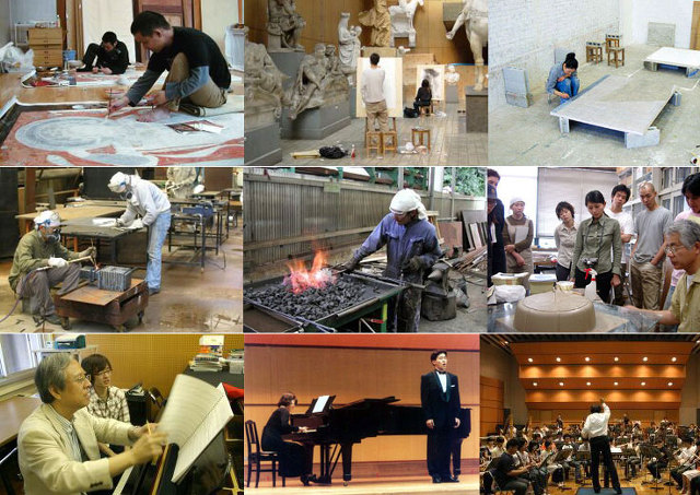 3. 공예과 : 공예기초, 조금(彫金), 단금(鍛金), 주금(鋳金), 칠예(漆芸), 도예, 염직