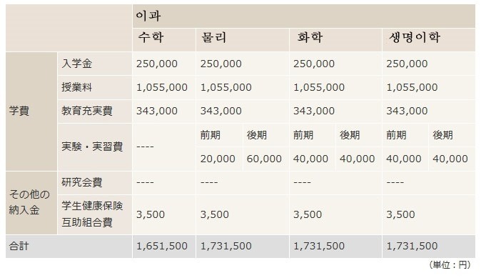 물리학과-일본어,이과(물리필수,그외화학/생물중택1), 수학코스2