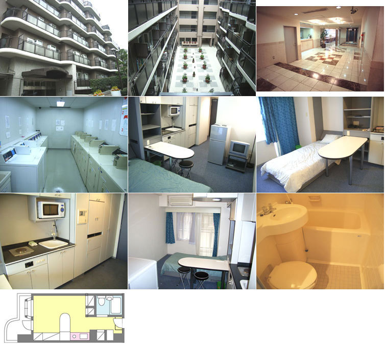 TV, 비디오, 냉장고, 관내코인빨래방, 전자렌지, 의자, 싱글침대, 조리기구, 인터넷, 오토락, 에어콘, 인터폰, 엘리베이터, 자전거주차장, 발코니, 침구(1set), 식기류(2set) | |