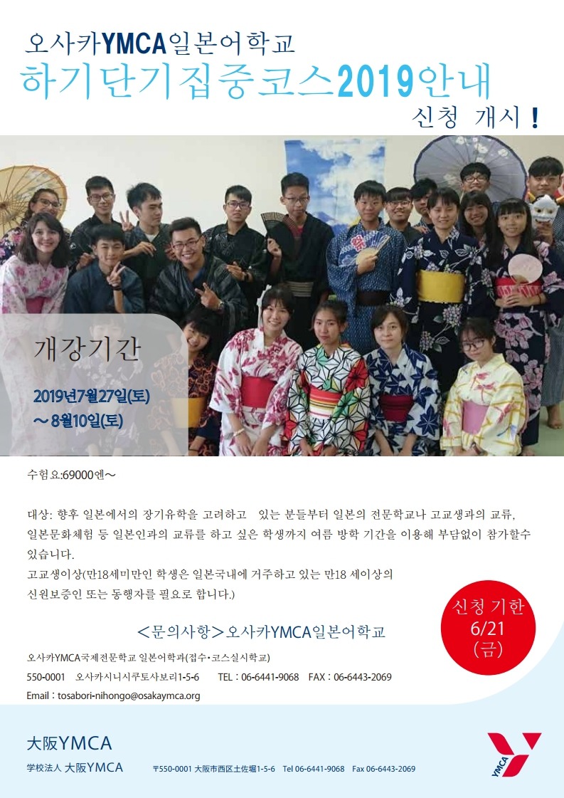 [2019년7월] 오사카YMCA일본어학교 여름 2주코스