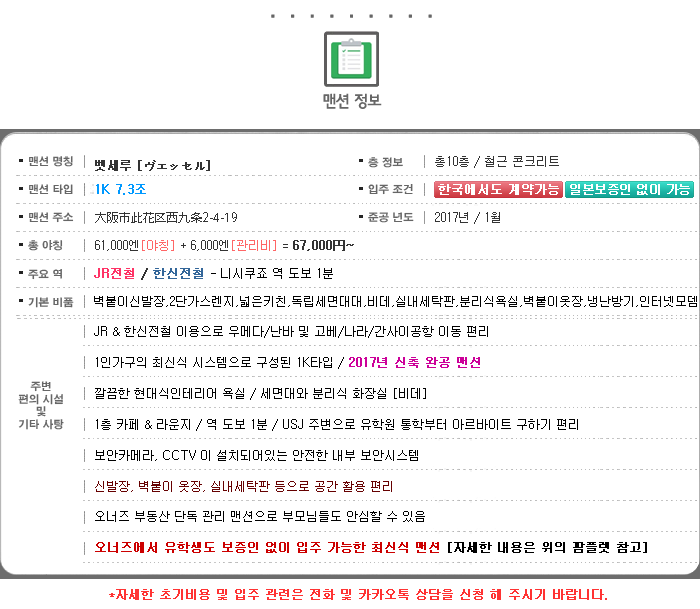 한국에서부터 편리한 입주 신청이 가능 해 진 맨션이라고 할 수 있겟는데요.