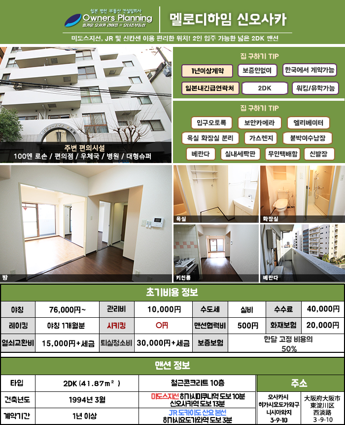 도쿄역에서 효고현의 고베를 잇는 간선 철도 노선과 부속 지선인 JR 도카이도 산요본선 ! 신칸센 등을 이용하여 타 지역으로의 출장이 잦은 직장인들은 신오사카 주변을 많이 선호하는데요, 오늘은 JR 도카이도 산요본선 - 히가시 요도가와역 도보 3분 미도스지선 히가시 미쿠니 & 신오사카역 도보 10분 남짓한 거리에 위치한 깔끔한 시설 합리적인 야칭의 2DK 맨션을 소개할까 하는데요~ 우메다, 난바까지도 환승없이 이동할수 있고 우메다까지 전차로의 이동시간이 약 10분 정도라, 우메다가 주 생활 동선이 되는 유학생, 직장인분들에게 특히나 추천드려요! 오사카집구하기 ♥