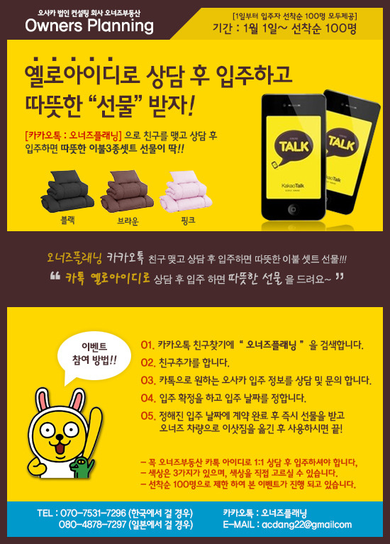 2015년 부터 유학생분들에게 옐로아이디로 상담을 받으면 이불을 선물로 드리는 이벤트를 진행 했는데,