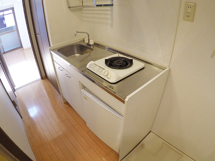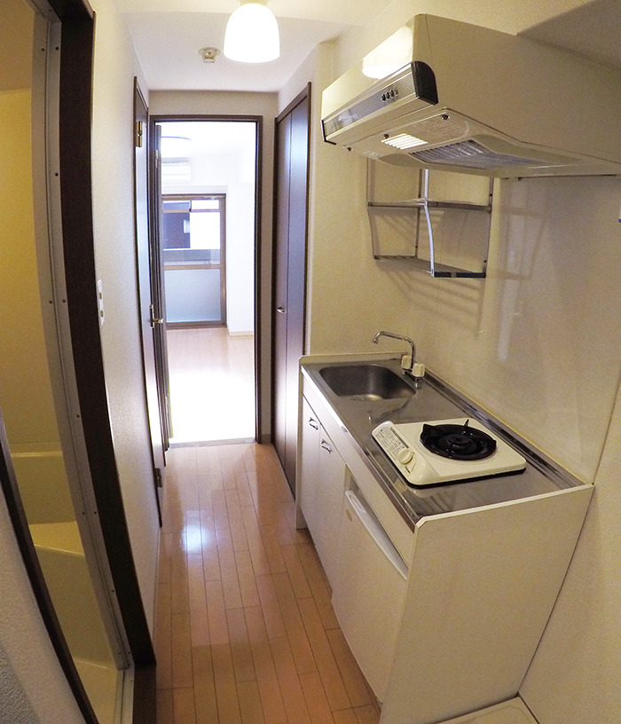 1K의 7조 맨션인 URO 다이코쿠초 맨션은 방내부의 세탁판이 설치되어있고, 넓은 키친 라인과 큰 환풍기,
