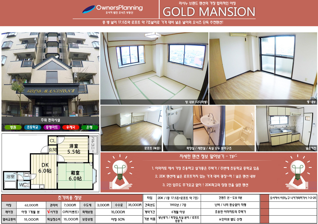 설명보다 자세한 사진과 동영상으로 오사카 집구하기로 추천하는 골드맨션 2관의 모든 자료를 확인 해 보실까요?